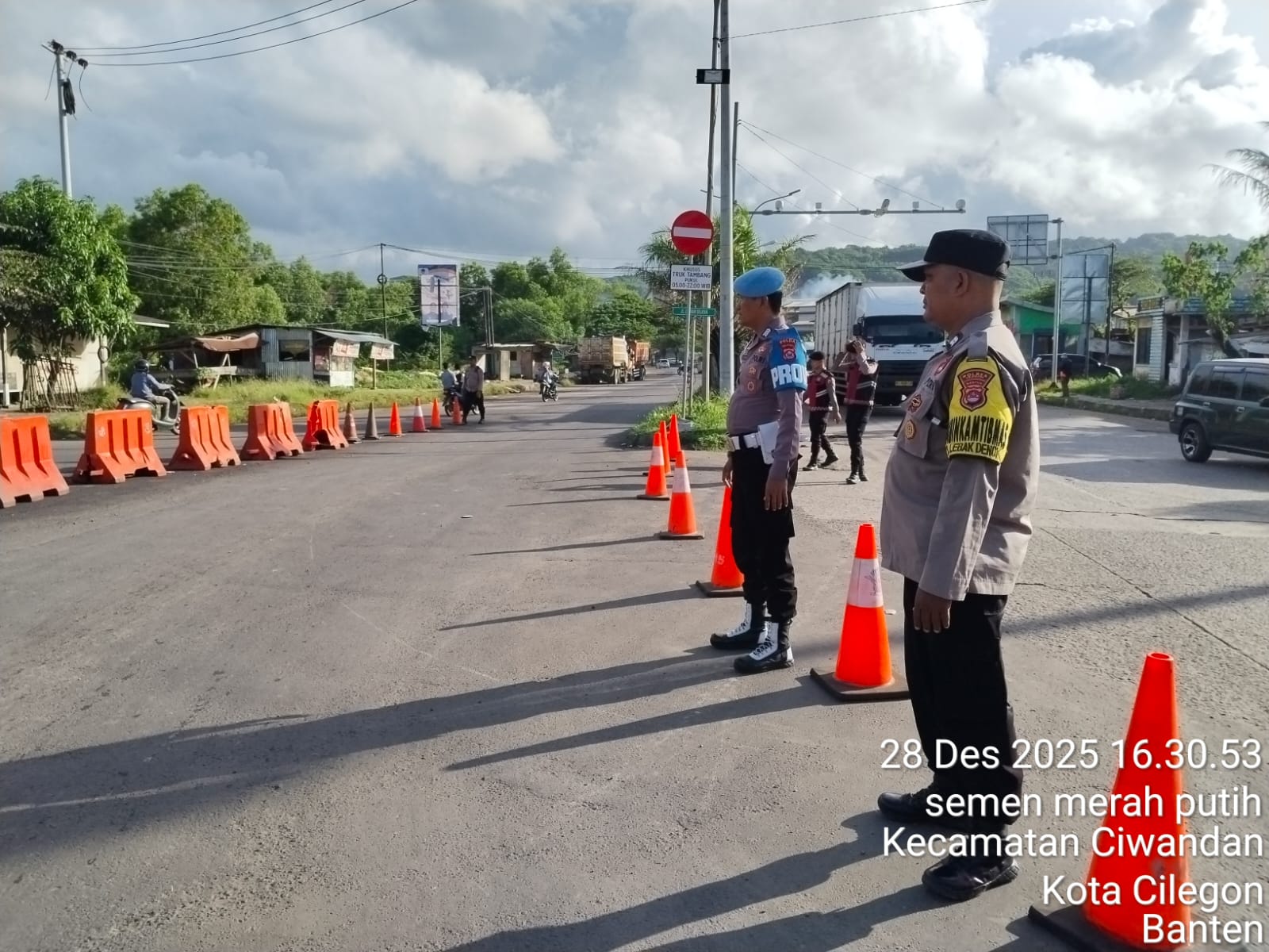 Cilegon - Guna Menciptakan kelancaran arus Lalu-Lintas Perayaan Natal Dan Tahun Baru menuju jalur wisata Anyer-Cinagka yang ada di daerah hukum Polsek Ciwandan Polres Cilegon Polda Banten,Pospam 5 Ciwandan berlakukan rekayasa Lalu lintas, Minggu (28/12/2025).