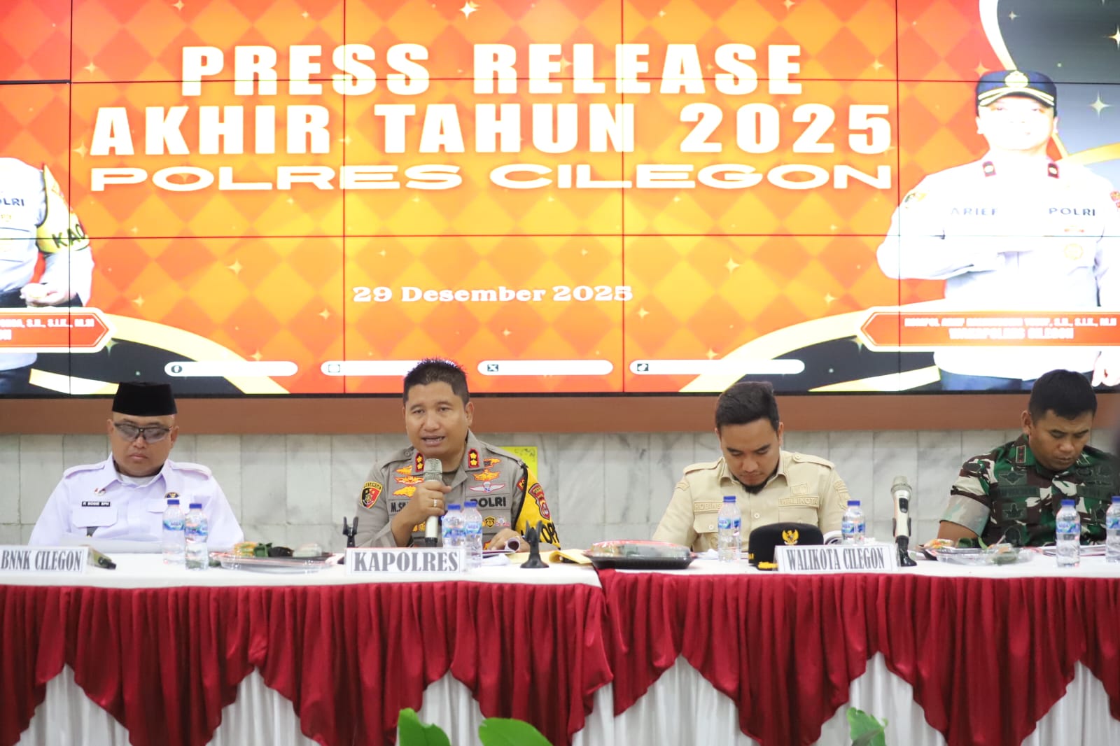 Cilegon – Polres Cilegon Polda Banten menggelar Press Release Akhir Tahun 2025 sebagai bentuk pertanggungjawaban publik sekaligus penyampaian capaian kinerja selama satu tahun terakhir. Kegiatan berlangsung di Aula Wicaksana Leghawa Polres Cilegon pada  pukul 11.30 WIB dipimpin Kapolres Cilegon AKBP Dr. Martua Raja Taripar Laut Silitonga, S.H., S.I.K., M.Si dan dihadiri unsur Forkopimda serta awak media. Senin (29/12/2025).