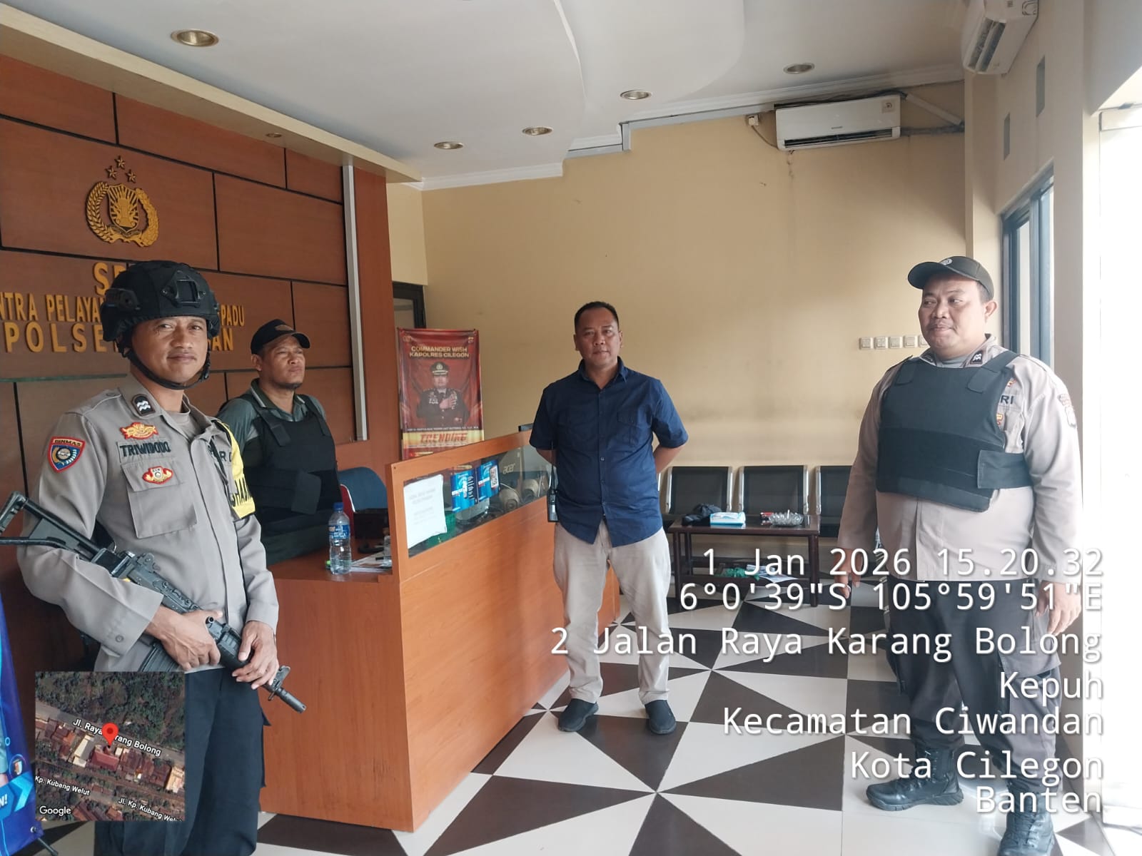 Cilegon - Guna mengantisipasi adanya potensi ancaman dan gangguan terhadap keamanan kantor maupun keselamatan personel piket jaga, Personil Polsek Ciwandan Polres Cilegon Polda Banten selalu tingkatkan kesiapsiagaan dan kewaspadaan dengan rutin menggelar kegiatan Sistem Pengamanan Mako (Sispam Mako), Kamis (01/01/2026).