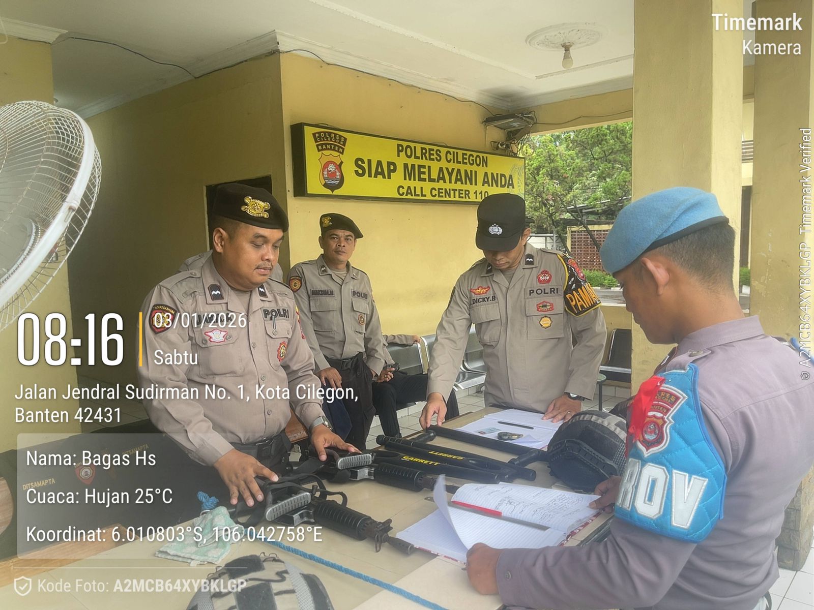 Cilegon, personel Satreskrim Polres Cilegon Polda Banten melaksanakan piket di penjagaan pintu masuk Polres Cilegon Polda Banten untuk memastikan mako Polres Cilegon dalam keadaan aman dan nyaman dalam melayani Masyarakat tanpa adanya gangguan kejahatan. Jumat  (03/01/2026).