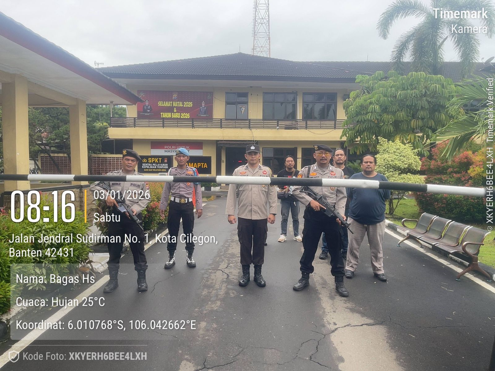 Cilegon, personel Satreskrim Polres Cilegon Polda Banten melaksanakan piket di penjagaan pintu masuk Polres Cilegon Polda Banten untuk memastikan mako Polres Cilegon dalam keadaan aman dan nyaman dalam melayani Masyarakat tanpa adanya gangguan kejahatan. Jumat  (03/01/2026).