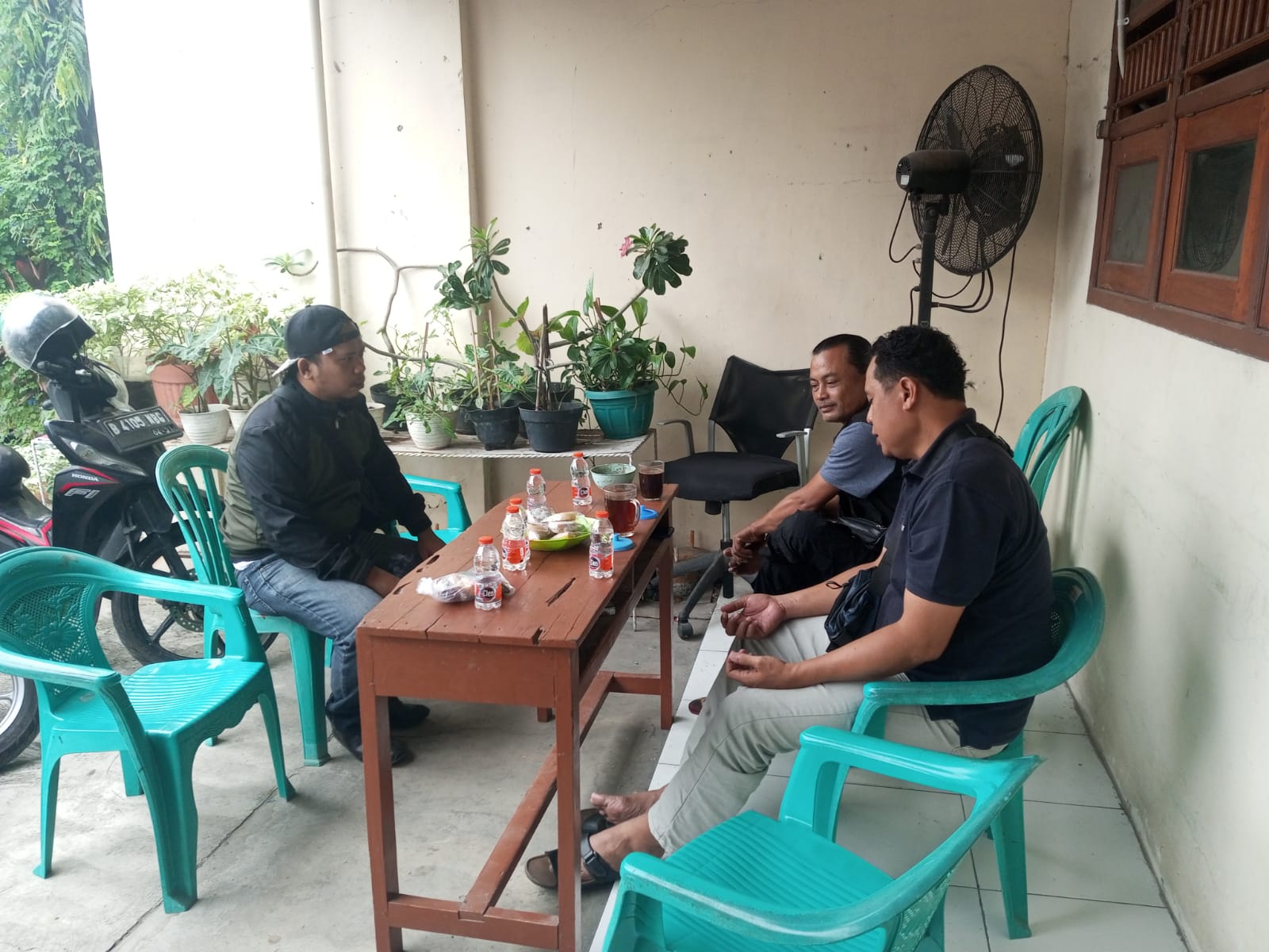Personil sat intelkam melakukan koordinasi dengan tokoh pemuda kec. Cilegon kota cilegon.