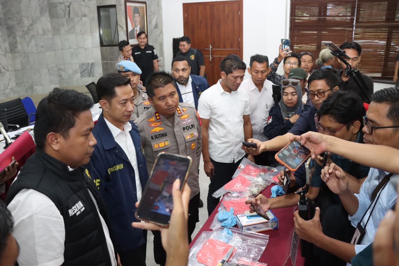 Press conference tersebut disampaikan oleh Ditreskrimum Polda Banten Kombes Pol Dian Setyawan didampingi Kapolres Cilegon AKBP Dr. Martua Raja Taripar Laut Silitonga, Plh. Kabid Humas Polda Banten AKBP Meryadi, Wakapolres Cilegon Kompol Arief Nazarudin, Kasubdit Jatanran Ditreskrimum Polda Banten Kompol Yeremia Iwo, Kasat Reskrim Polres Cilegon AKP Yoga Tama, Ka Instalasi Forensik Modikolegal RSUD Cilegon Dr. Baeti Adhayati SP FM, Puslabfor Polri Kompol Irfan Rofik.
