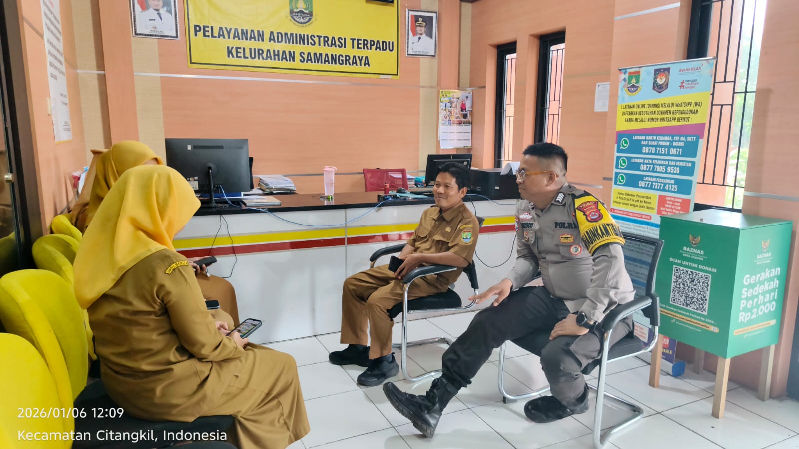 Cilegon -  Bhabinkamtibmas Kelurahan Samangraya Polsek Ciwandan Polres Cilegon Polda Banten BRIPKA Marisco melaksanakan kegiatan sambang Dialogis Dan silaturahmi Bersama Lurah Dan Staff Kelurahan Samangraya Kecamatan Citangkil Kota Cilegon, Selasa (06/01/2026).