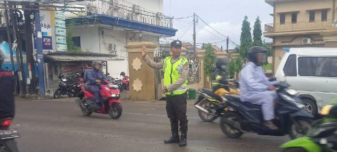Cilegon - Pelayanan Kepada Warga Masyarakat dan Guna menciptakan situasi lalu lintas yang aman, tertib dan lancar, Personel Polsek Anyar Polres Cilegon Polda Banten secara rutin melaksanakan pengaturan lalu lintas di Simpang Puskesmas Anyar Jl. Raya Anyar-Cinangka, Rabu (07/01).
