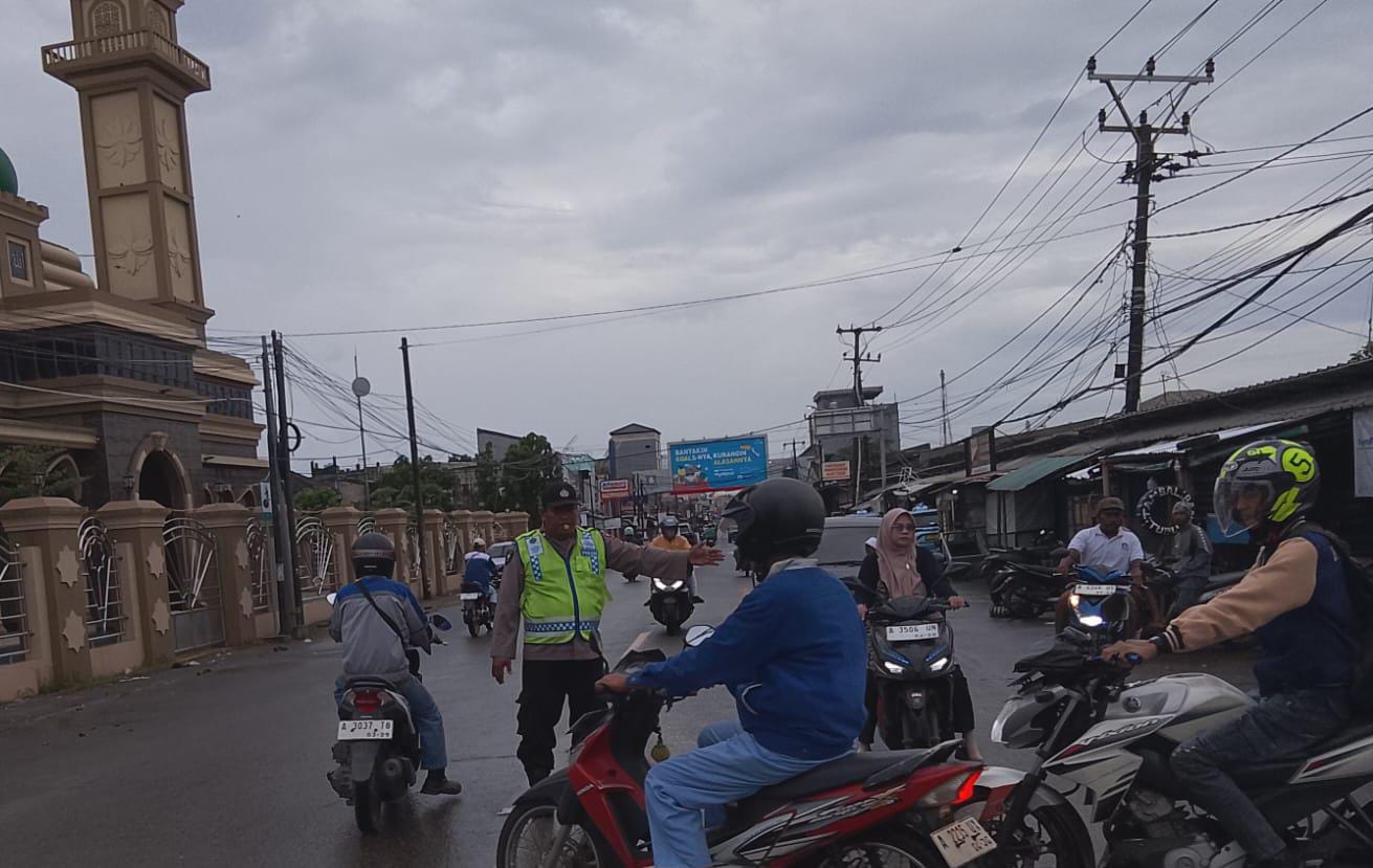 Polsek Anyar Melaksanakan Urai Kendaraan Pengaturan Lalu Lintas