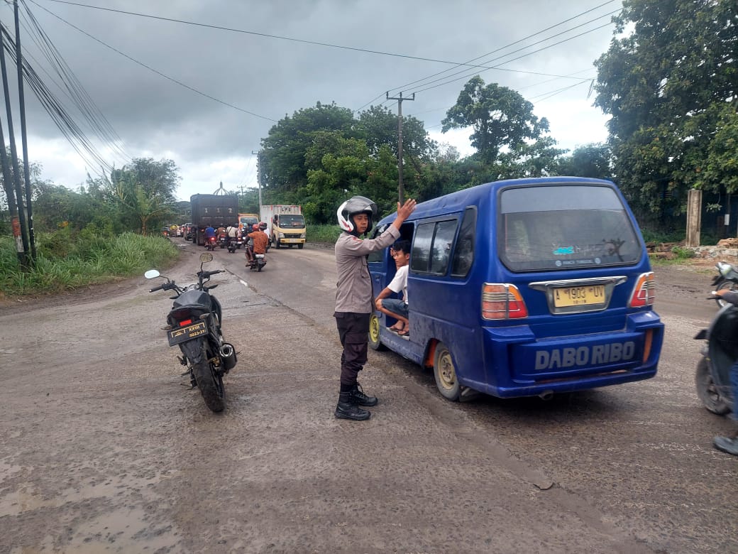 Bripka Bambang Personil Polsek Bojonegara Laksanakan Gatur Lalin Di Jalan Raya PT Bam Bojonegara