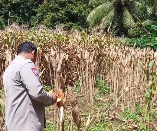 Dalam kegiatan monitoring ini, Bhabinkamtibmas meninjau langsung kondisi lahan jagung.