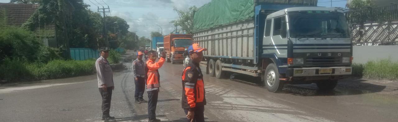 Strong Poin Sore Hari, Bripka Leo & Dishub Laksanakan Pengaturan lalu lintas Di Jalan Raya PT SMI Bojonegara