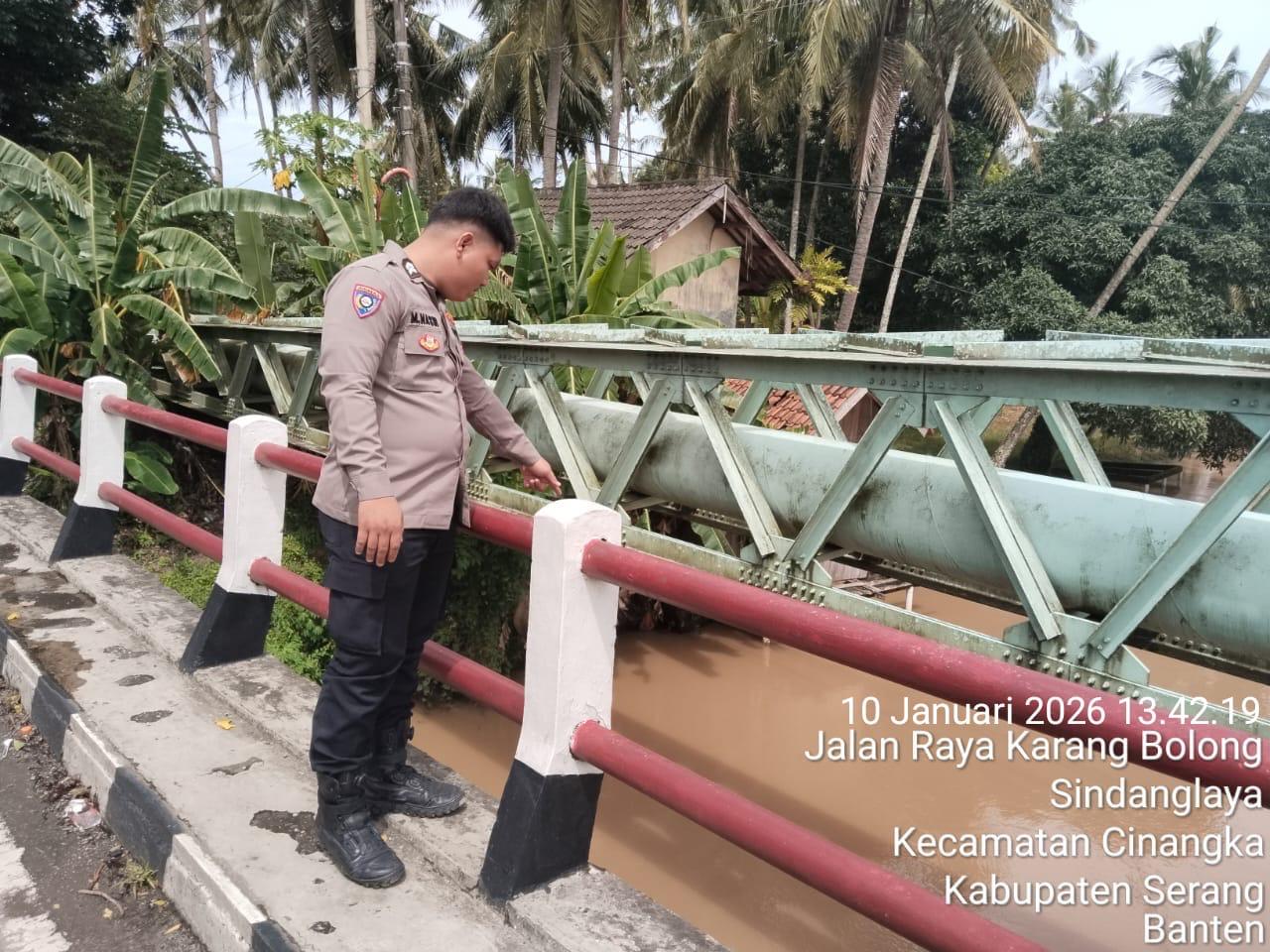 Piket Polsek Cinangka secara rutin melakukan pengecekan kondisi sungai dan berkoordinasi dengan pihak terkait untuk memantau perkembangan debit air. Pemantauan ini juga melibatkan partisipasi aktif dari masyarakat setempat.