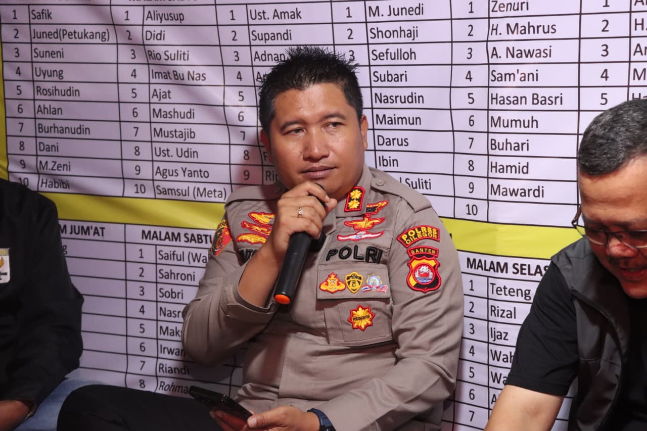 Kegiatan yang berlangsung sekitar pukul 22.16 WIB tersebut dihadiri langsung Kapolres Cilegon bersama jajaran pejabat utama Polres Cilegon, di antaranya Kabag Ops AKP Choirul Anam, S.H., M.H., M.Si., Kasat Binmas IPTU Muhyiddin, S.H., Kasie Propam AKP Herry Susanto, S.H., M.M., serta Kasat Lantas AKP Ridwan, S.T.K., S.I.K., M.H. Turut mendampingi Kapolsek Cibeber AKP Atep Mulyana, S.H., M.Si. bersama jajaran fungsi pembinaan dan Bhabinkamtibmas.