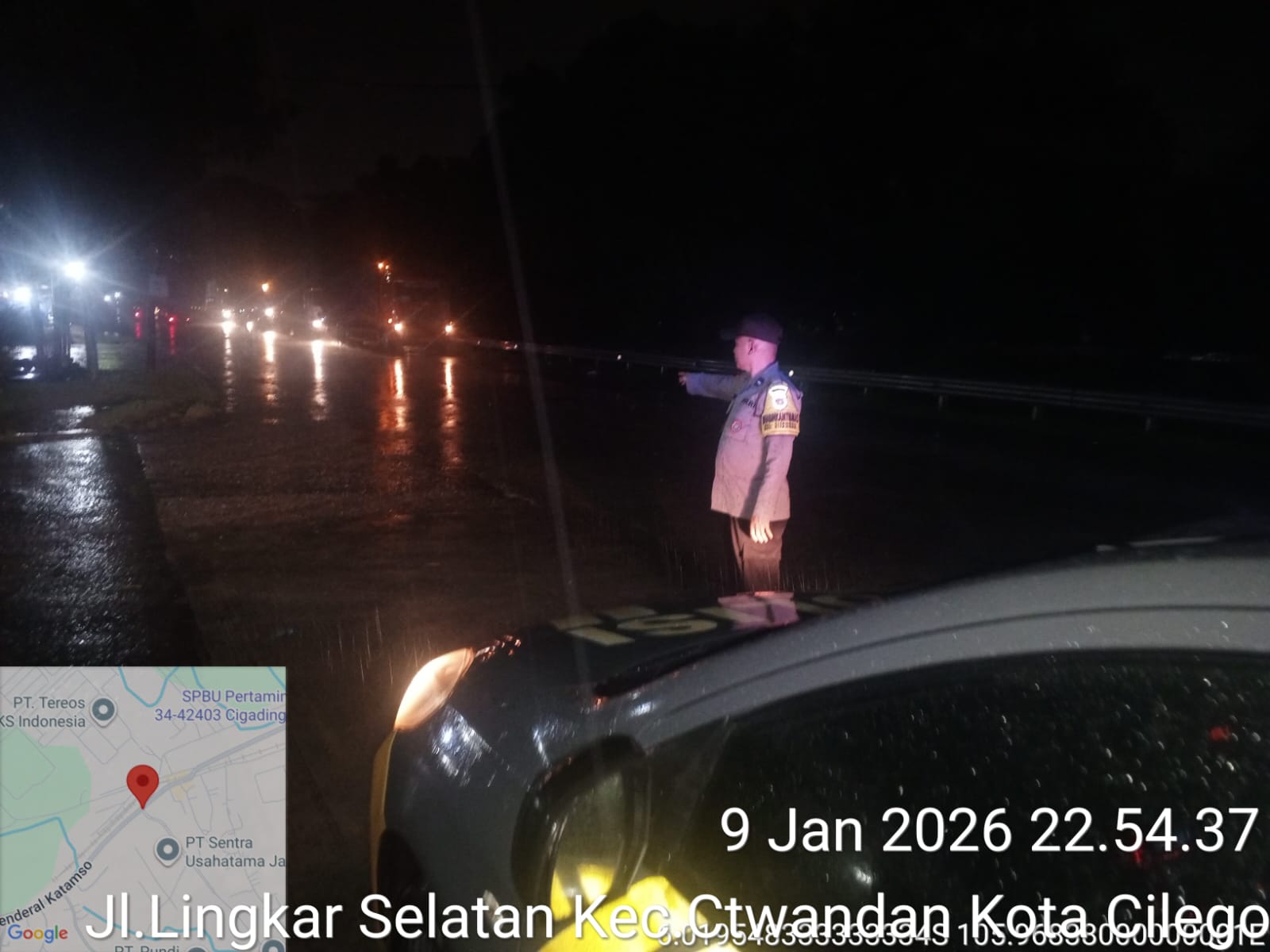 Cilegon - Personil Polsek Ciwandan Polres Cilegon Polda Banten, melaksanakan patroli antisipasi cuaca ekstrem di daerah hukumnya pada, Sabtu (10/01/2026).