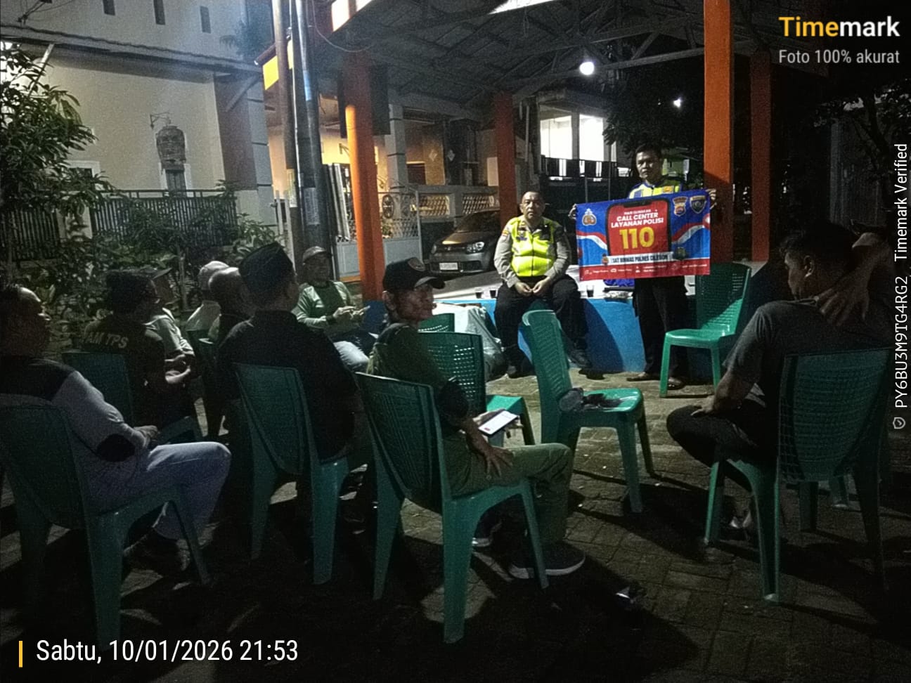 Cilegon - Kasat Binmas Polsek Ciwandan Polres Cilegon Polda Banten IPTU Muhyidin bersama Personil Bhabinkamtibmas Polsek Ciwandan Polres Cilegon Polda Banten BRIPKA Heri Siswantoko melakukan kontrol Pos Ronda dan Berikan himbauan kepada pihak terkait dan warga, agar kegiatan Siskamling ditingkatkan lagi, Minggu (11/01/2026).
