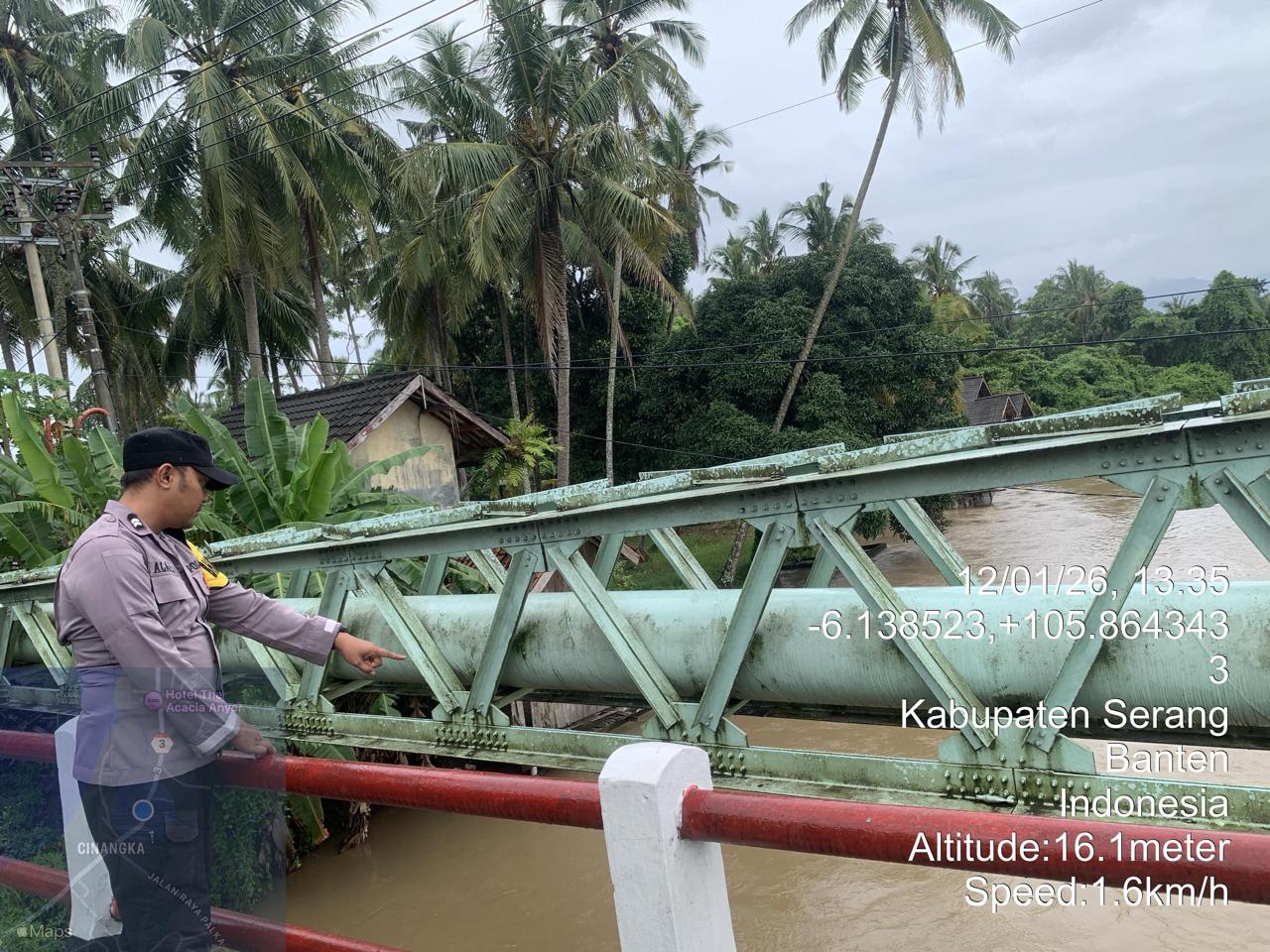 Piket Polsek Cinangka secara rutin melakukan pengecekan kondisi sungai dan berkoordinasi dengan pihak terkait untuk memantau perkembangan debit air. Pemantauan ini juga melibatkan partisipasi aktif dari masyarakat setempat.