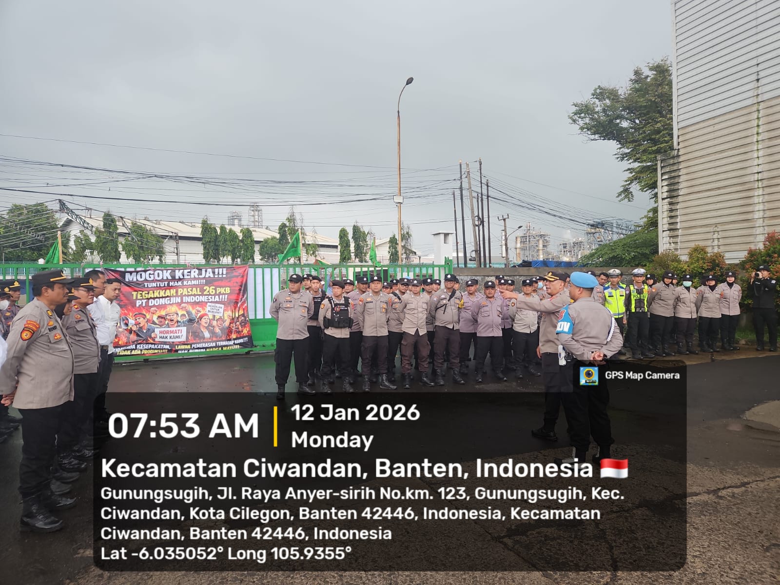 Cilegon - Polres Cilegon melalui Polsek Ciwandan siap mengamankan aksi unjuk rasa dari DPC FSPKEP Kota Cilegon di PT. Dongjin Indonesia. Kegiatan ini telah dilakukan pengecekan apel kesiapan oleh Kapolsek Ciwandan, Kompol Andi Suherman, S.H., M.M., Senin (12/01/2026).