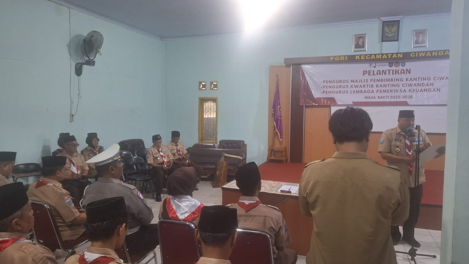 Cilegon - Polres Cilegon melalui Polsek Ciwandan menghadiri pelantikan pengurus Majlis Pembimbing Ranting Ciwandan, Pengurus Kwartir Ranting Ciwandan, dan Pengurus Lembaga Keuangan Masa Bakti 2025-2026 di Gedung PGRI Kecamatan Ciwandan. Senin (12/01/2026).
