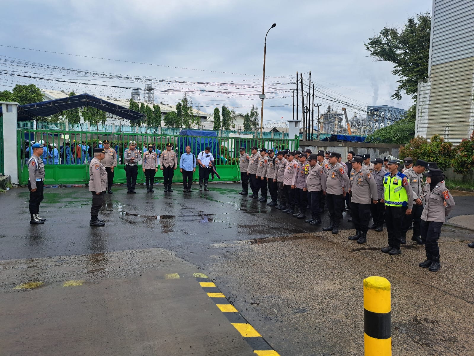 Polres Cilegon melaksanakan pengamanan di PT. Dongjin Indonesia, Cilegon, pada hari ini. Pengamanan ini dilakukan dalam rangka menjaga keamanan dan ketertiban di lingkungan perusahaan.