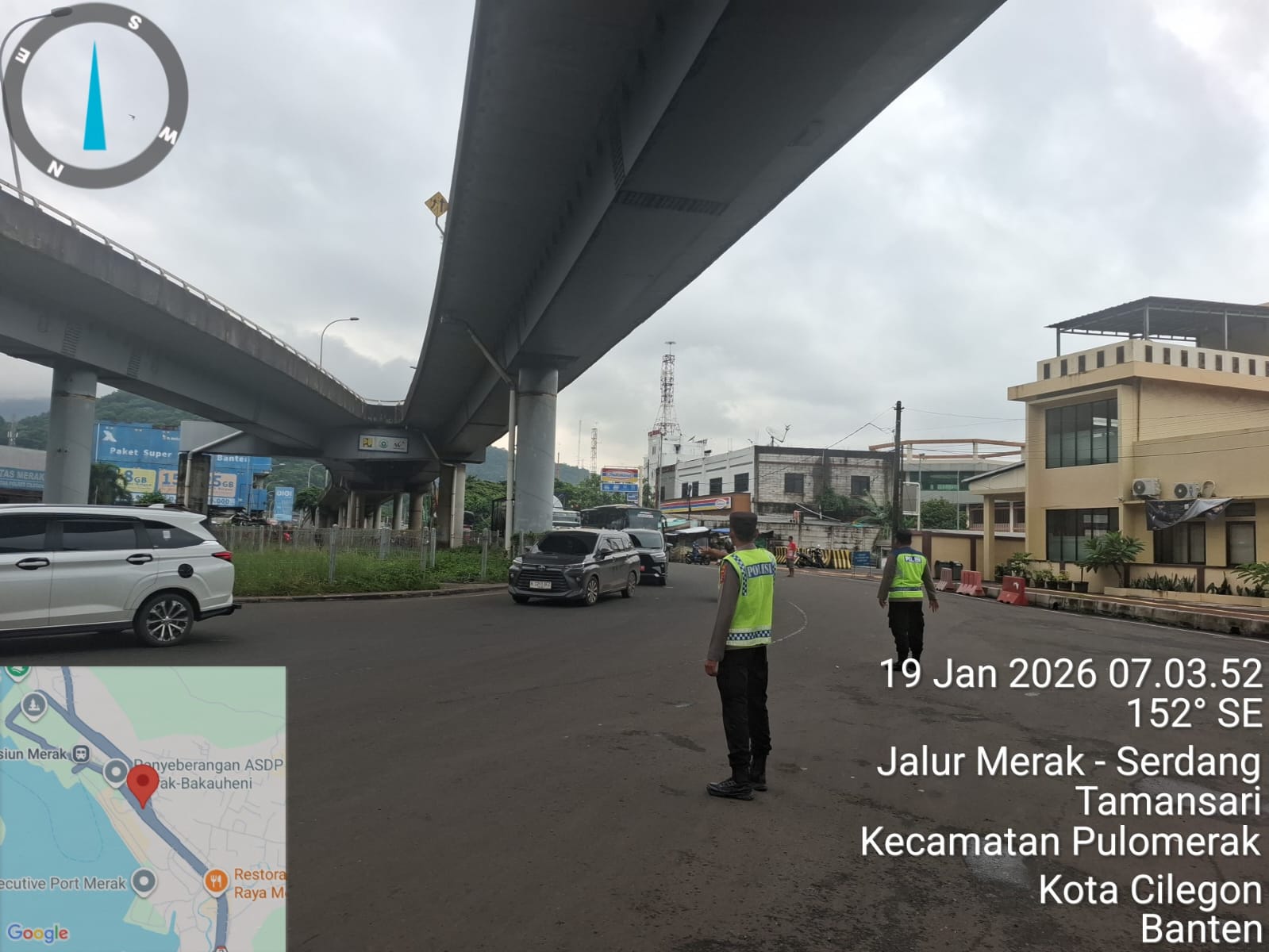 Kapolres Cilegon Polda Banten AKBP Martua Raja Taripar Laut Silitonga melalui Kapolsek Kskp Merak AKP Gusti Almasri P menyampaikan bahwa kegiatan pengaturan antrian ini adalah dalam rangka memberikan pelayanan kepada masyrakat yang akan menyebrang ke Bakauheni atau Sumatra melalui jalur laut dengan menaiki kapal Ferry.