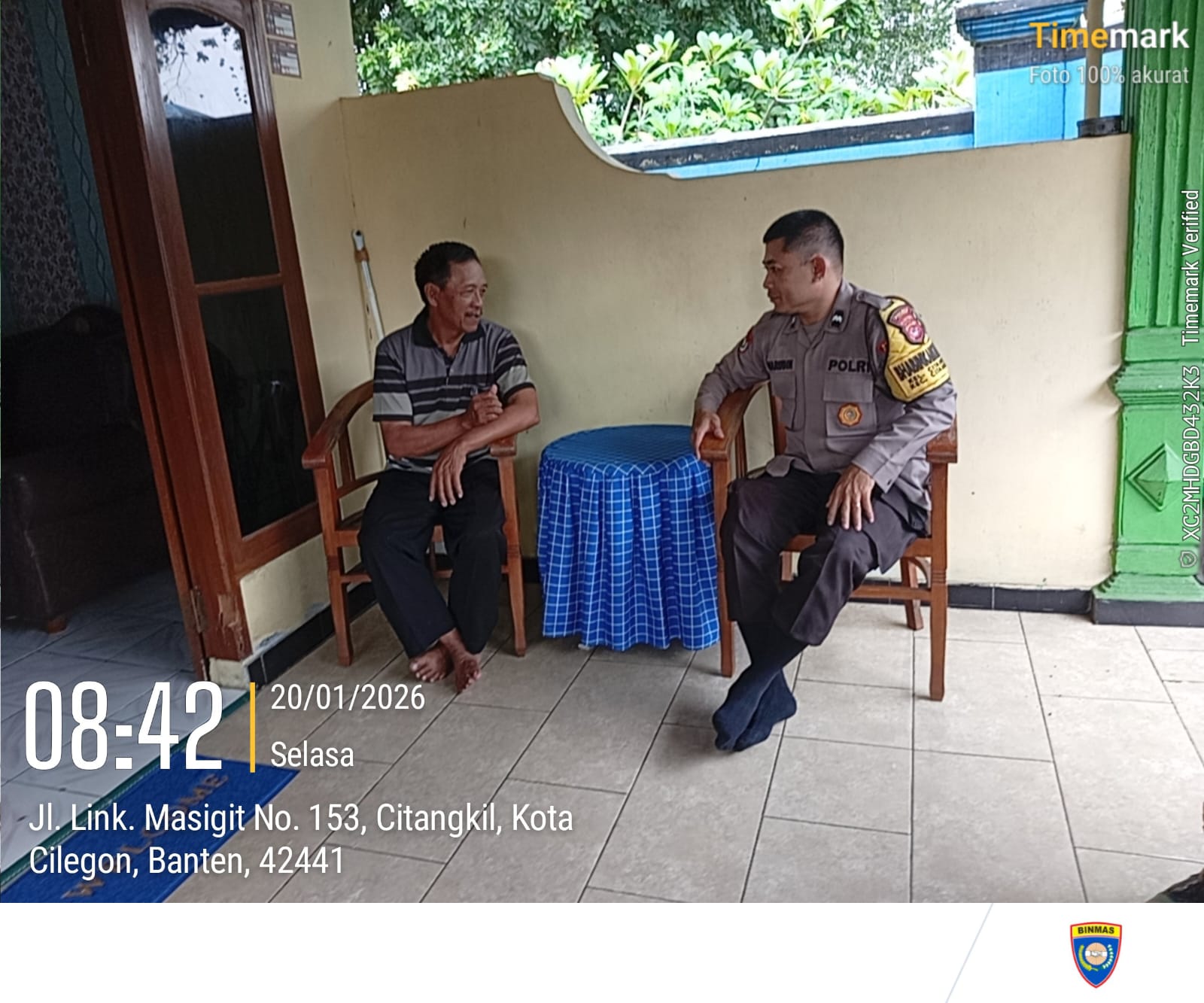 Cilegon - Bhabinkamtibmas Polsek Ciwandan Polres Cilegon Polda Banten Melalui Sambang Dialogis menjaga kamtibmas selalu kondusif dan aman serta untuk mengetahui situasi dan kondisi terkini yang ada di Daerah binaannya,Sekaligus sebagai sarana silaturahmi dengan berbagai elemen yang ada di masyarakat, Selasa (20/01/2026).