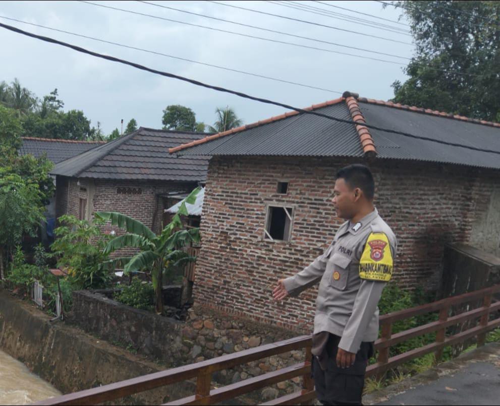 Personel Polsek Anyar Polres Cilegon Polda Banten melaksanakan Patroli kewilayahan mengecek debit air di Sungai pasca Hujan antisipasi banjir di wilayah Kec. Anyar, Rabu (21/01).