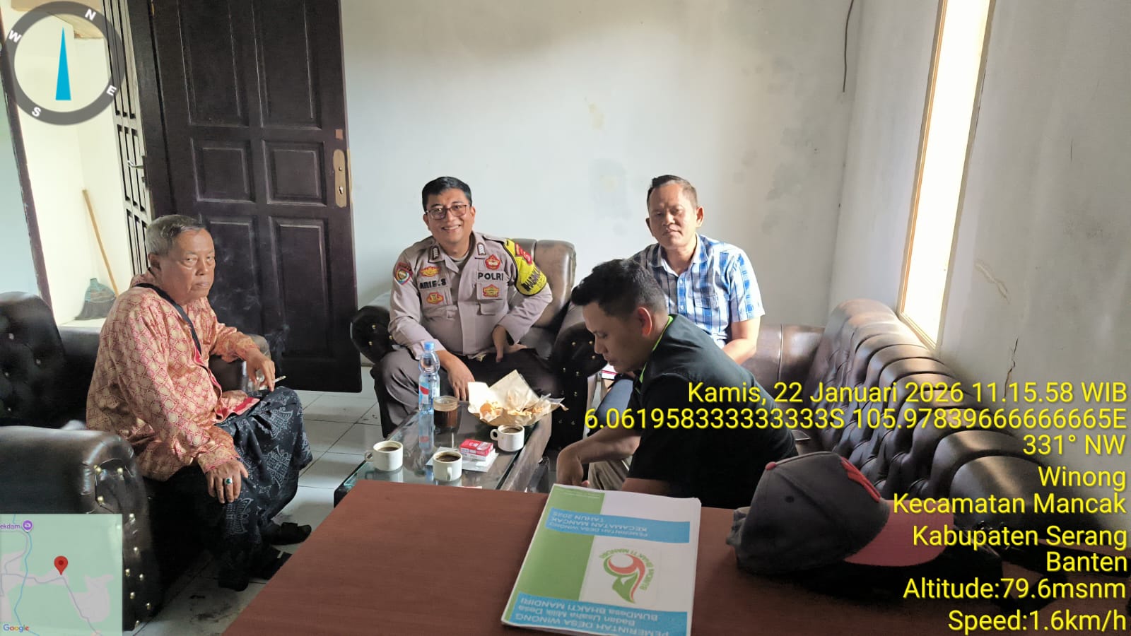 Kapolres Cilegon Polda Banten AKBP Dr. Martua Raja Taripar Laut Silitonga melalui Kapolsek Mancak  AKP ANDI AAS  MARIO Dan  Anggota Bhabinkamtibmas  BRIPKA ARIE SUFRIYADI, BRIGADIR ASEP WINDU SAPUTRA melaksanakan kegiatan sambang serta implementasi Commander Wish Kapolda Banten "WARBINLING" Warung Bhabinkamtibmas Keliling dan Program Commanderwish Kapolres Cilegon "TRENDING" dalam rangka menciptakan situasi aman dan kondusif di daerah hukum Polsek Mancak Polres Cilegon.
