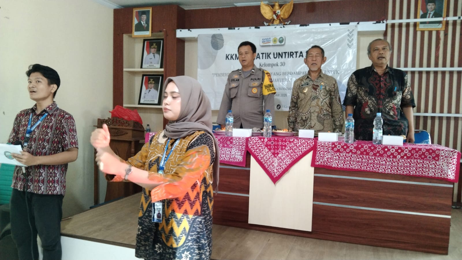 Cilegon - AIPDA Mere Erlansyah, Bhabinkamtibmas Kel. Kepuh, menghadiri acara Sosialisasi Mahasiswa KKM Tematik Untirta 2026 dengan tema "Pemberdayaan Masyarakat yang Berdampak Nyata untuk Banten Sejahtera" di Aula Kantor Kel. Kepuh, Ciwandan. Kamis (22/01/2026).