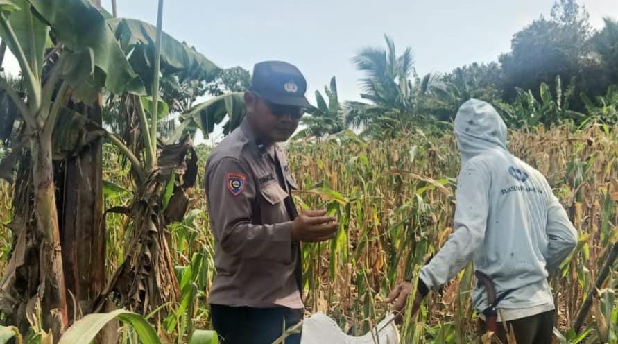 Beri Pendampingan Polsek Anyar Pada Panen Jagung Kelompok Tani