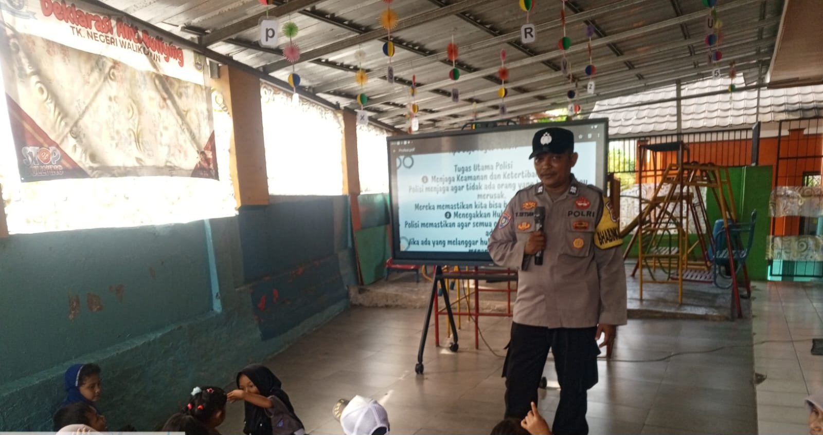 Bhabinkamtibmas Polsek Ciwandan Kenalkan Sosok Polisi Kepada Anak-anak Sekolah TK.