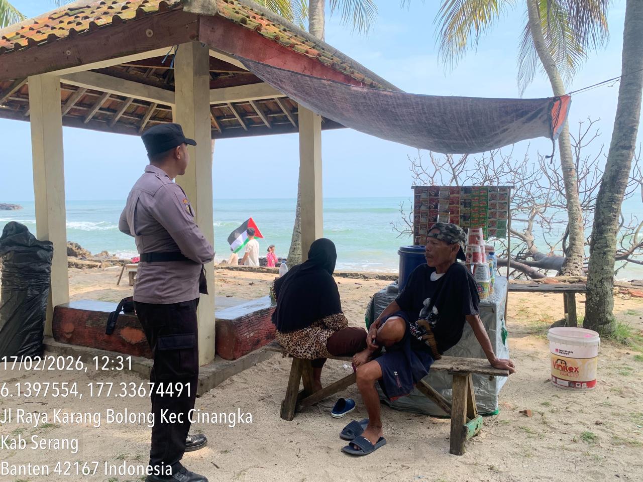 _*POLRES CILEGON*_ | Polsek Cinangka Polres Cilegon Polda Banten melaksanakan kegiatan patroli Serta memberikan Himbauan kepada pengunjung pantai yang berwisata dan Sambang kepada petugas penjaga pantai dan juga antisipasi harkamtibmas di Wilayah Hukum Polsek Cinangka Polres Cilegon Polda Banten, Selasa (17/02/2026).