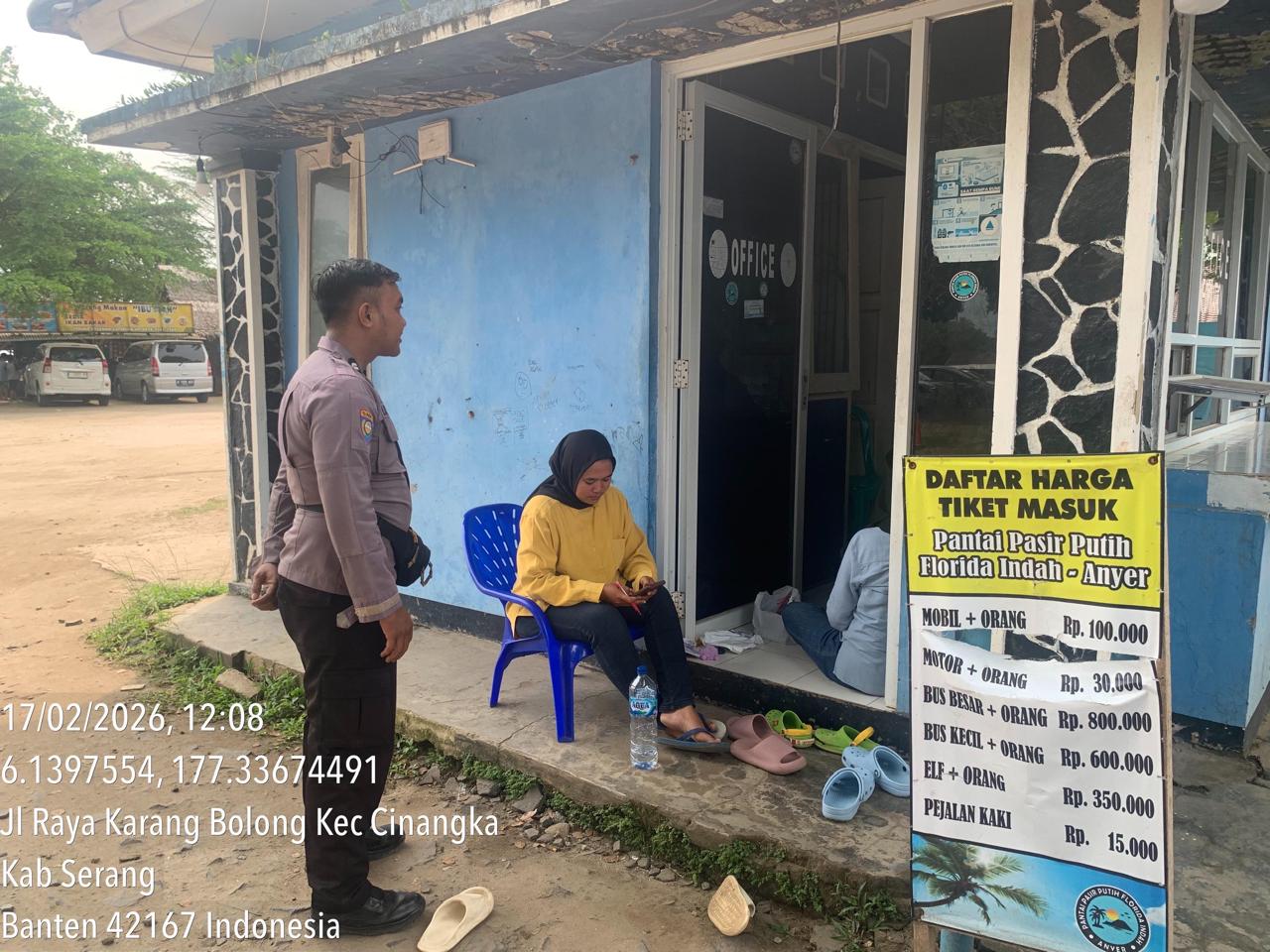 _*POLRES CILEGON*_ | Polsek Cinangka Polres Cilegon Polda Banten melaksanakan kegiatan patroli Serta memberikan Himbauan kepada pengunjung pantai yang berwisata dan Sambang kepada petugas penjaga pantai dan juga antisipasi harkamtibmas di Wilayah Hukum Polsek Cinangka Polres Cilegon Polda Banten, Selasa (17/02/2026).
