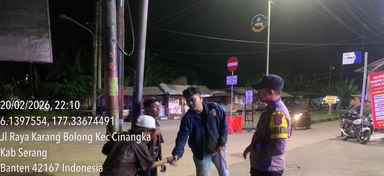 *Cilegon* – Dalam Rangka Pencegahan Kejahatan Jalanan dan Memelihara situasi keamanan dan menjaga serta memberikan rasa aman dan nyaman di masyarakat,Salah satu upaya untuk mewujudkan hal tersebut sebagaimana yang dilakukan oleh Personil Polsek Cinangka Polres Cilegon Polda Banten melaksanakan giat patroli blue light malam hari hingga menjelang pagi, Sabtu (21/02/2026).