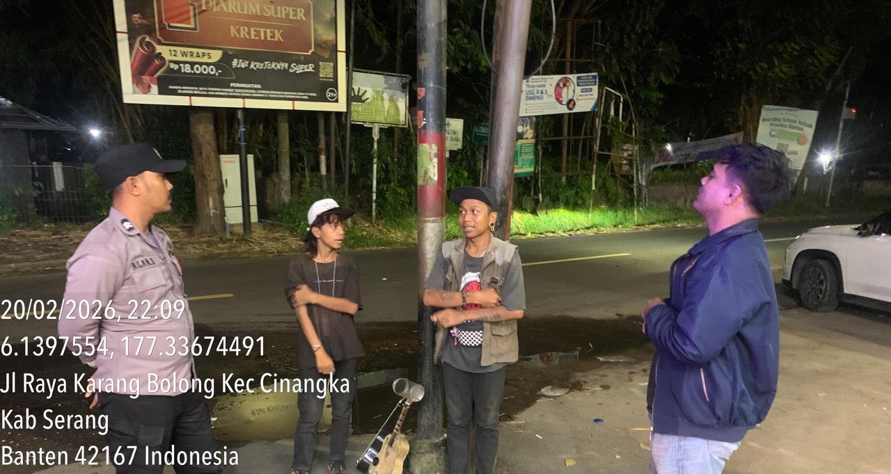 *Cilegon* – Dalam Rangka Pencegahan Kejahatan Jalanan dan Memelihara situasi keamanan dan menjaga serta memberikan rasa aman dan nyaman di masyarakat,Salah satu upaya untuk mewujudkan hal tersebut sebagaimana yang dilakukan oleh Personil Polsek Cinangka Polres Cilegon Polda Banten melaksanakan giat patroli blue light malam hari hingga menjelang pagi, Sabtu (21/02/2026).