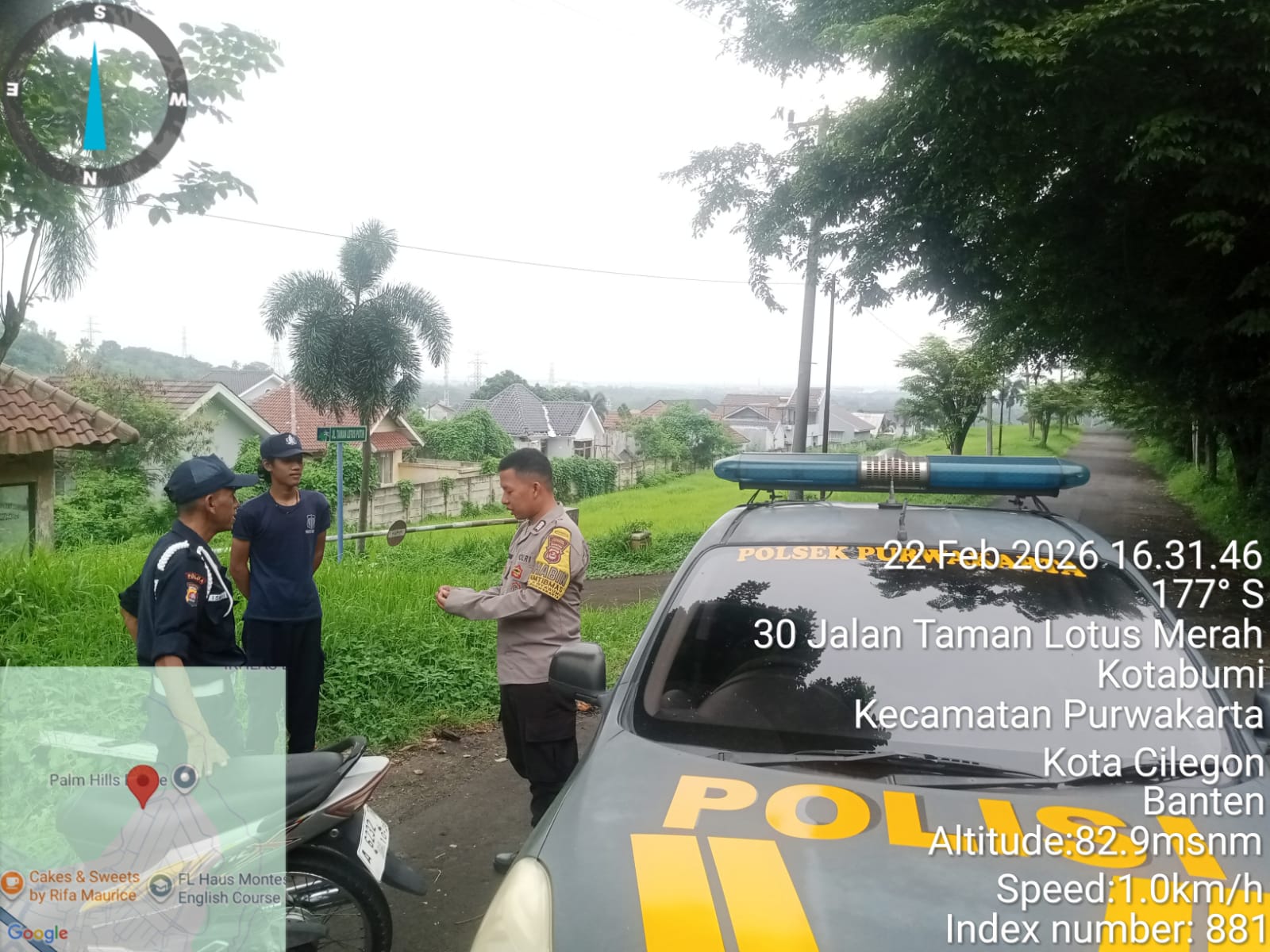 Cilegon – Polres Cilegon Polda Banten, Personil Polsek Purwakarta Polres Cilegon Polda Banten laksanakan bincang dialogis sekaligus sampaikan himbauan kamtibmas kepada pihak keamanan/security tepatnya di Pos Security Perum Palem Hills dan Komplek Krakatau Steel Kota Cilegon. Minggu (22/02/2026).