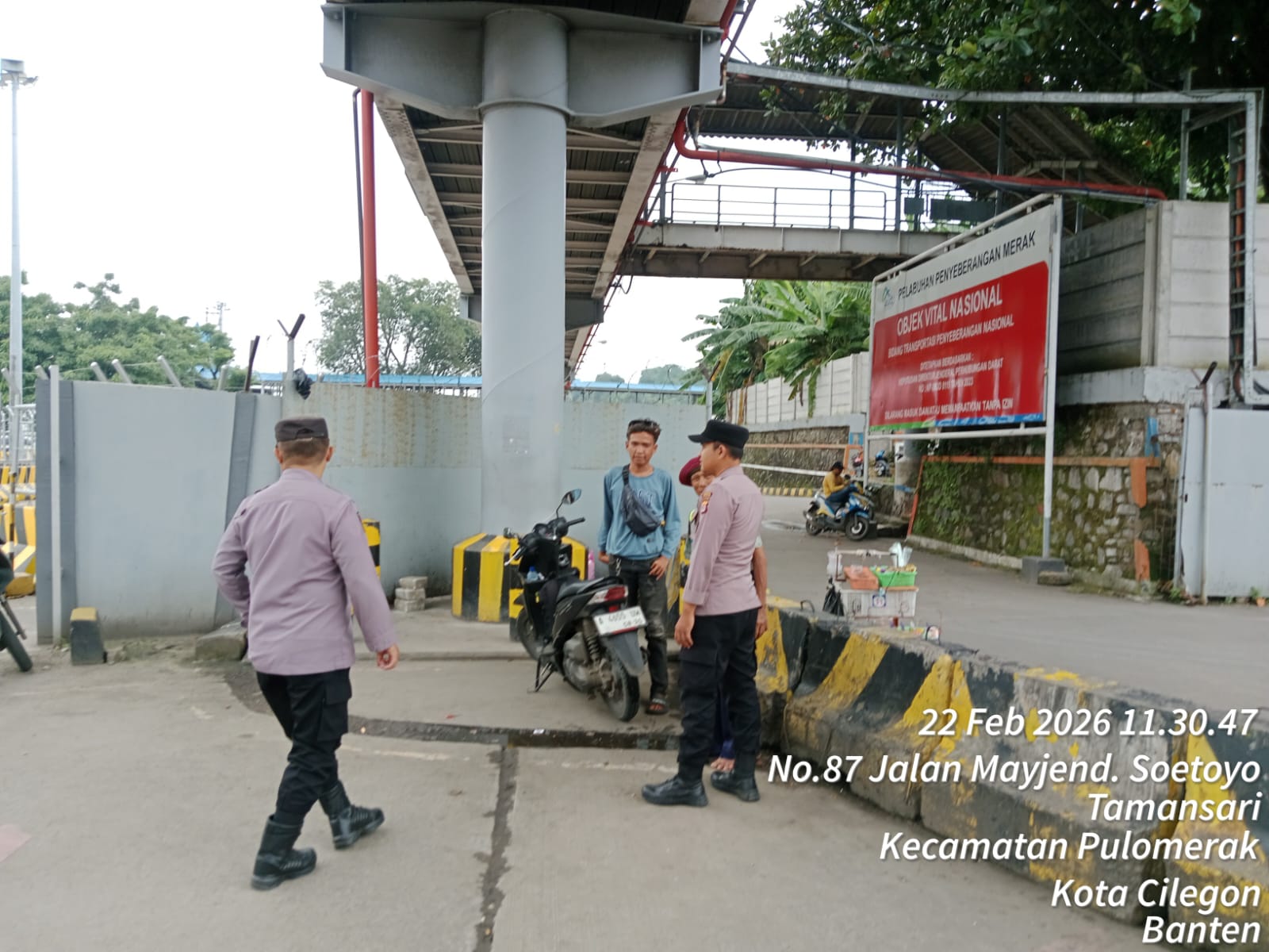 Cilegon - Personel Polsek Kskp Merak Polres Cilegon Polda Banten melaksanakan sambang dan patroli kawasan pelabuhan merak dalam rangka menjaga Harkamtibmas di Kawasan Pelabuhan Merak, Minggu (22/02/2026).