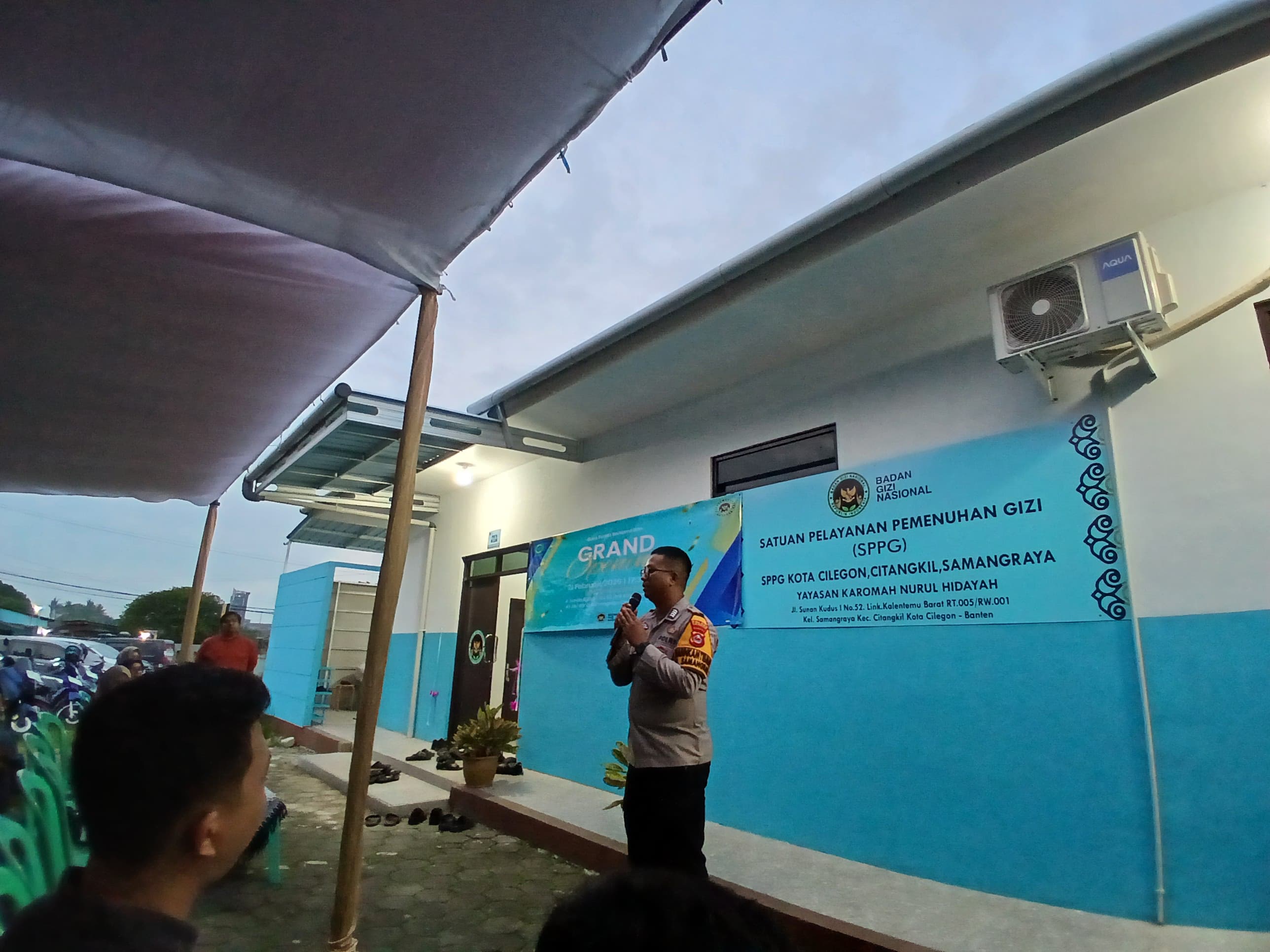 Cilegon - Bhabinkamtibmas Kelurahan Samangraya, BRIPKA Marisco melaksanakan sambang dan silaturahmi dalam rangka Door to Door System dan Pelaksanaan Commander Wish Kapolres Cilegon yaitu TRENDING, pada acara Grand Opening SPPG Samangraya, Minggu (22/02/2026).