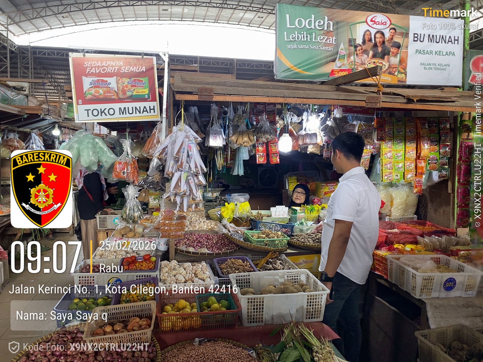 Cilegon – Unit II Satreskrim Polres Cilegon Polda Banten melakukan pengecekan terhadap persediaan dan harga bahan pangan di Pasar Kelapa, Cilegon, tahun 2026. Rabu tanggal 25 02 2026.