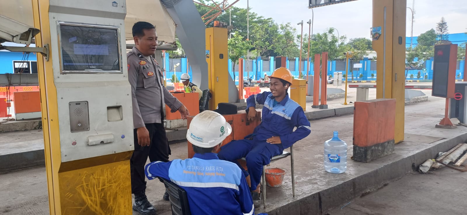 Personil Bhabinkamtibmas Polsek Kawasan Pelabuhan Banten Berbincang dengan Buruh