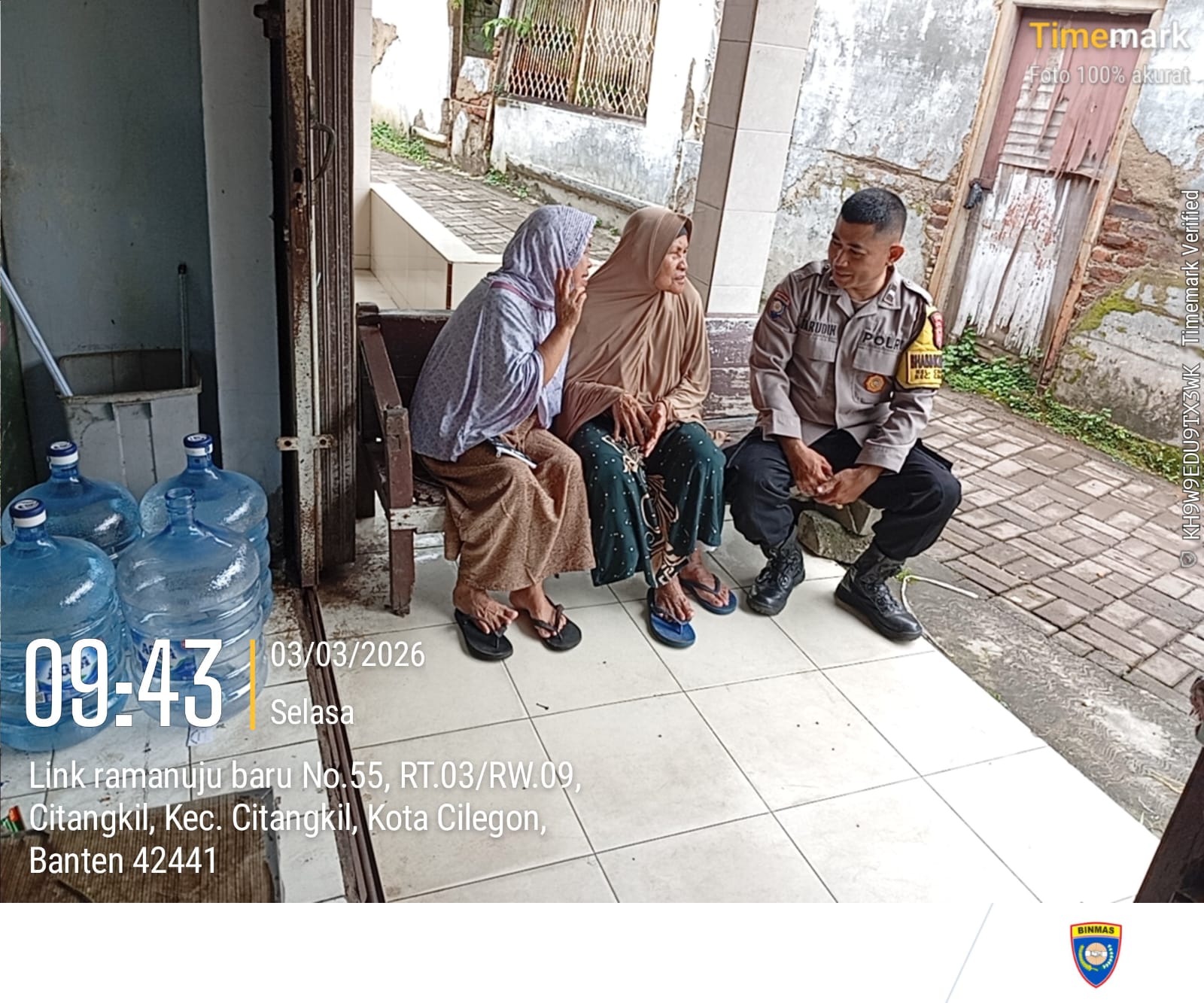 Cilegon - Giat sambang ini merupakan salah satu tugas rutin Bhabinkamtibmas yakni dengan melaksanakan kunjungan kepada warga masyarakat binaannya untuk menjalin silaturahmi yang lebih erat dan menyampaikan pesan-pesan kamtibmas serta mencari informasi yang berkembang di masyarakat agar tercipta situasi kamtibmas yang aman dan kondusif, Rabu (04/03/2026).