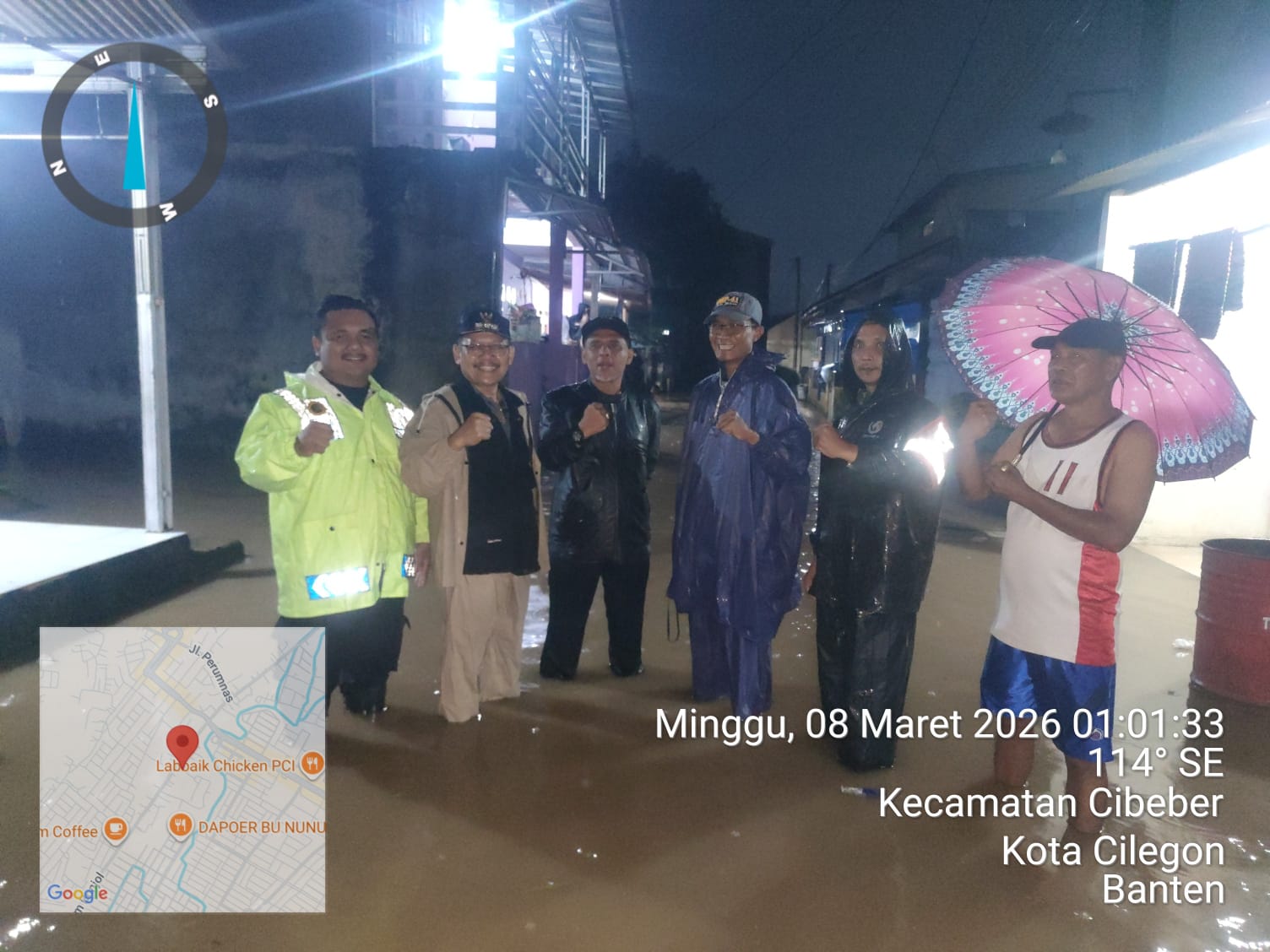 banyak rumah warga yang tergenang. Anggota Polsek Cibeber Polres Cilegon berserta
