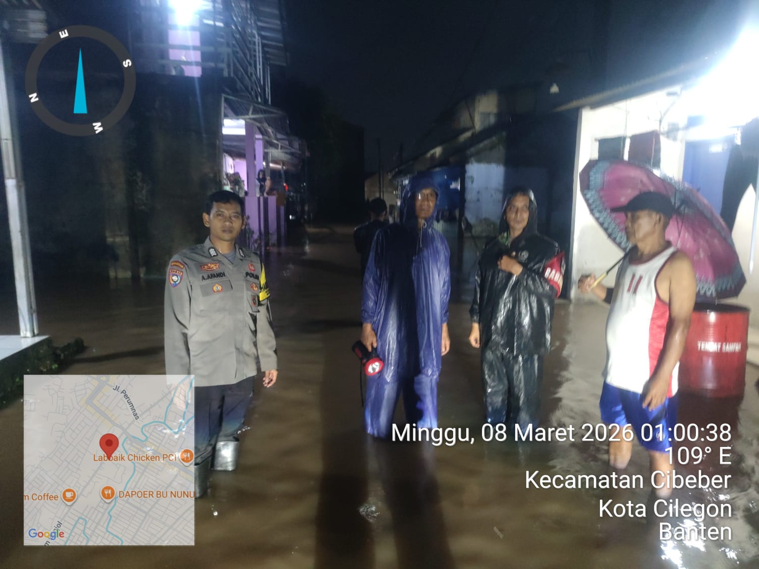 Camat Cibeber dan dibantu dengan warga sekitar melakukan patroli genangan air