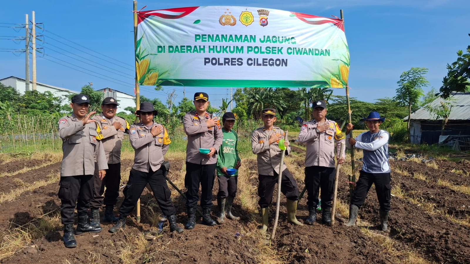 Cilegon - Polsek Ciwandan Polres Cilegon Polda Banten  melaksanakan kegiatan penanaman jagung serentak kuartal 1 tahun 2026 di kawasan KSI Kelurahan Warnasari Kecamatan Citangkil kota Cilegon, Minggu (08/03/2026).