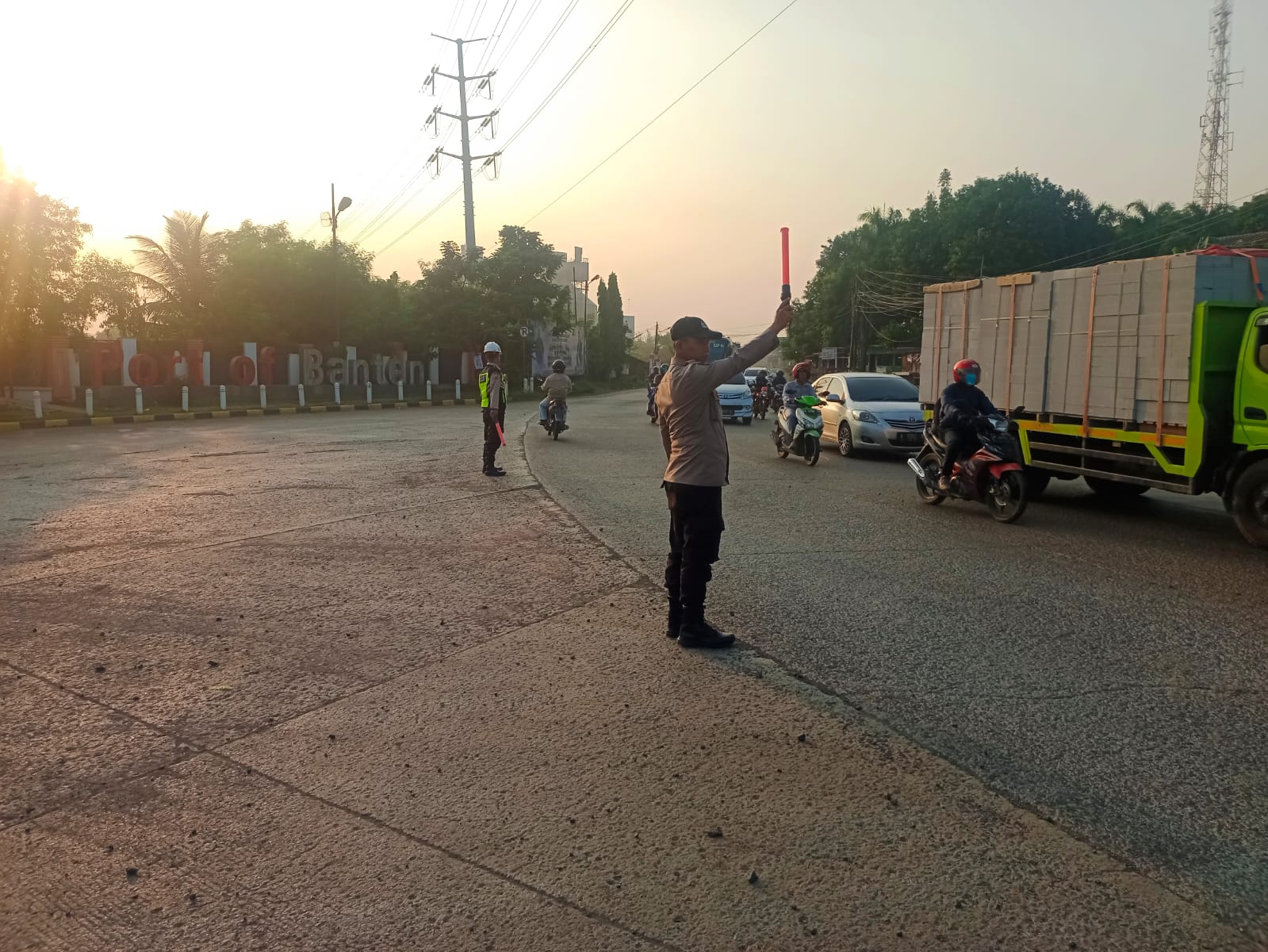Kapolres Cilegon AKBP Martua Raja Taripar Laut Silitonga Melalui Kapolsek Kskp Banten Polres Cilegon AKP Fredo Leonard menyampaikan Laksanakan Pengamanan Sesuai plotinganya lakukan Pengaturan Supaya Arus Lalu Lintas tetap Berjalan lancar dan Pastikan tidak ada hambatan.