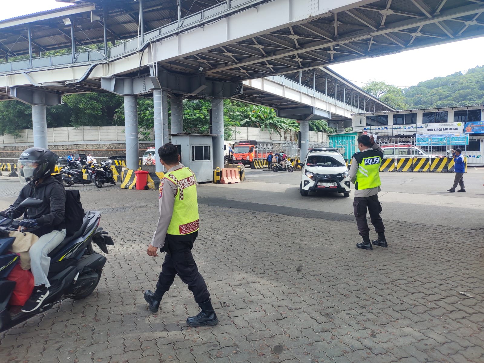 Kapolres Cilegon Polda Banten AKBP Martua Raja Taripar Laut Silitonga melalui Kapolsek Kskp Merak AKP Gusti Almasri P menyampaikan bahwa kegiatan pengaturan antrian ini adalah dalam rangka memberikan pelayanan kepada masyrakat yang akan menyebrang ke Bakauheni atau Sumatra melalui jalur laut dengan menaiki kapal Ferry.