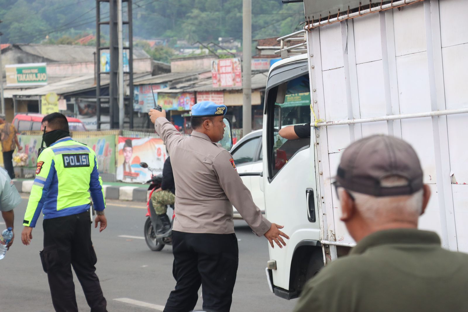 Kapolres Cilegon Polda Banten AKBP Dr. Martua Raja Taripar Laut Silitonga, S.H., S.I.K., M.Si. memimpin langsung kegiatan monitoring situasi di lapangan guna memastikan arus kendaraan tetap berjalan lancar.