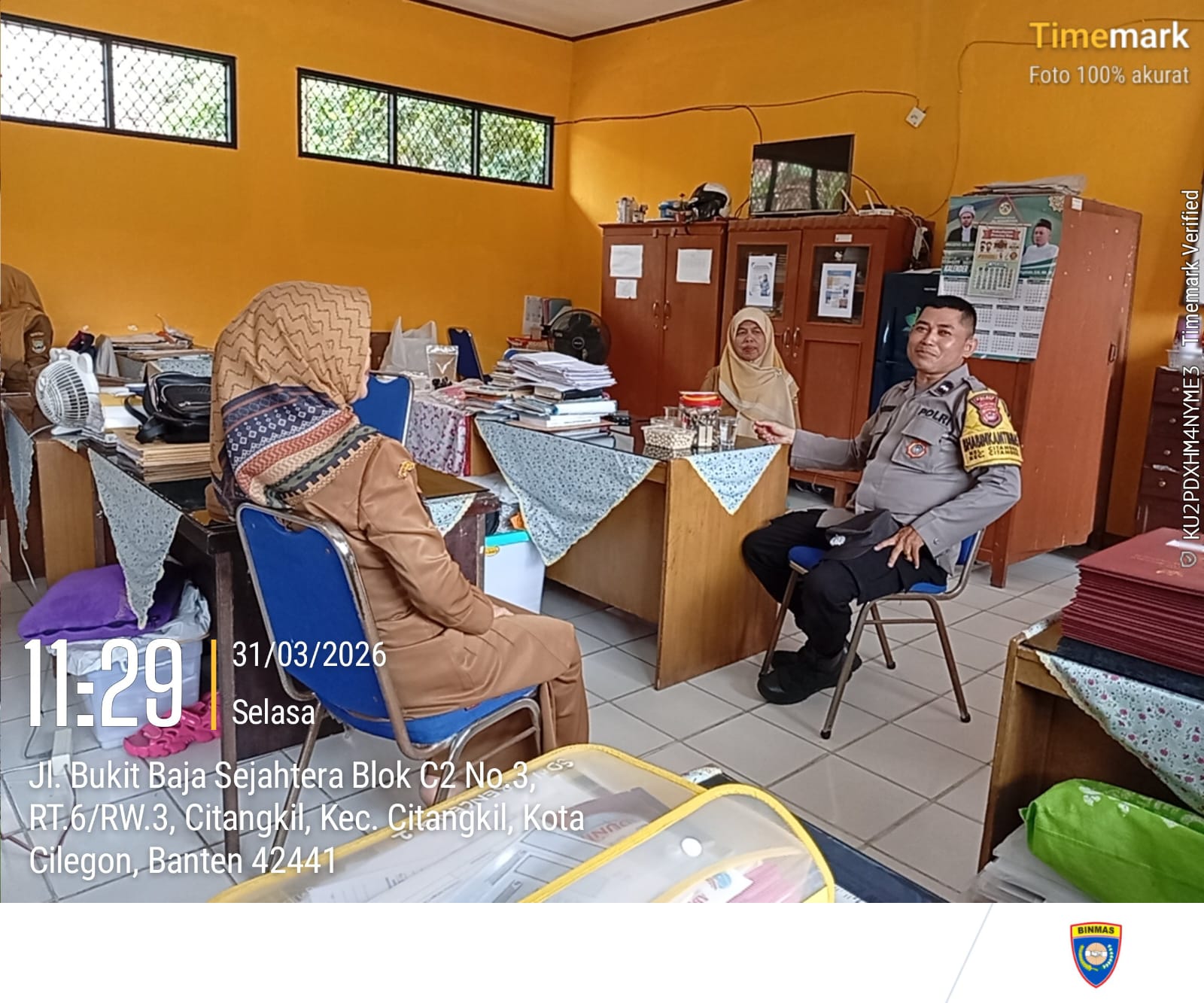 Cilegon - Bhabinkamtibmas Polsek Ciwandan Polres Cilegon Polda Banten Sampaikan Pesan-Pesan Kamtibmas Kepada Dewan Guru, Selasa (31/03/2026).