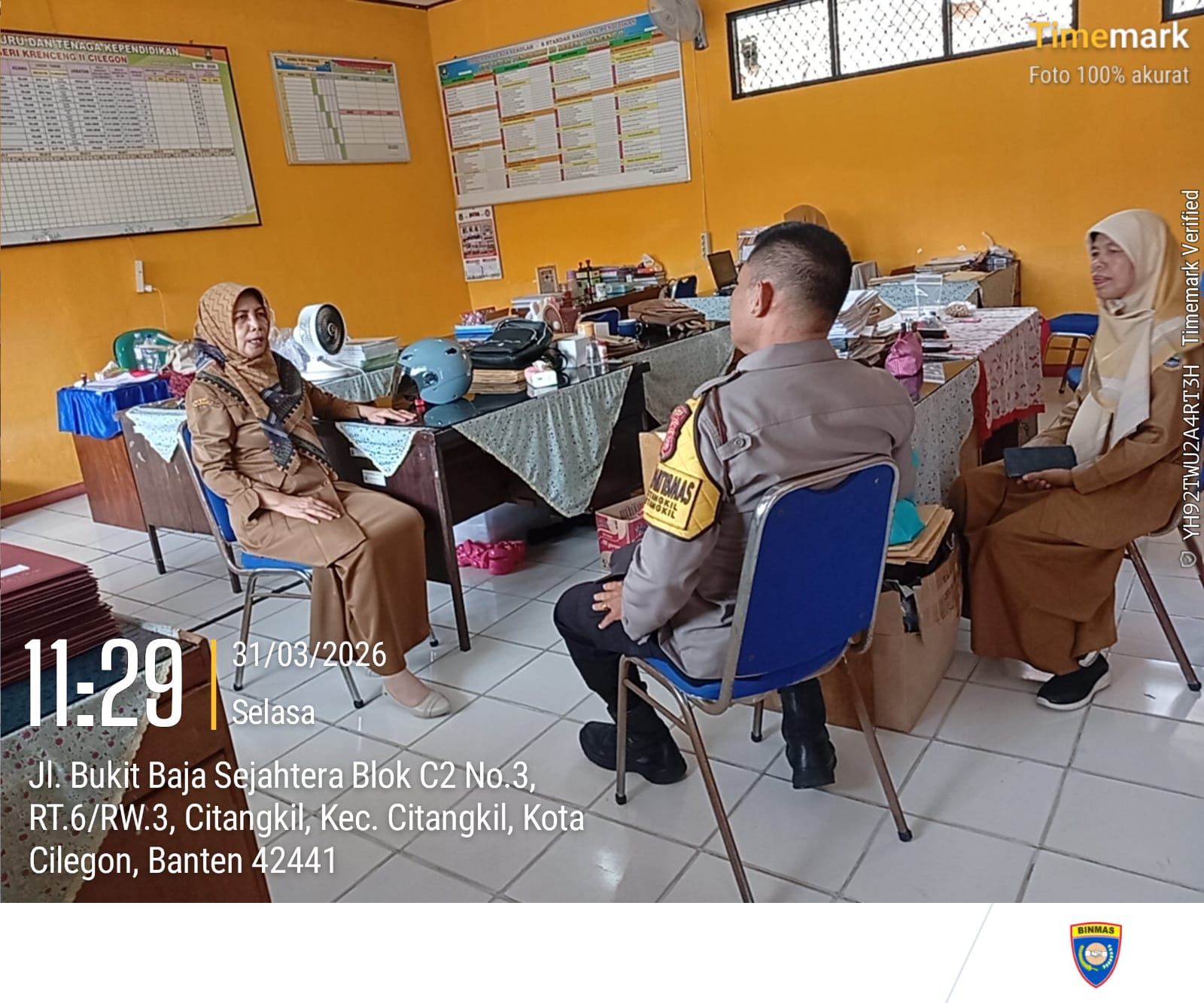 Cilegon - Bhabinkamtibmas Polsek Ciwandan Polres Cilegon Polda Banten Sampaikan Pesan-Pesan Kamtibmas Kepada Dewan Guru, Selasa (31/03/2026).