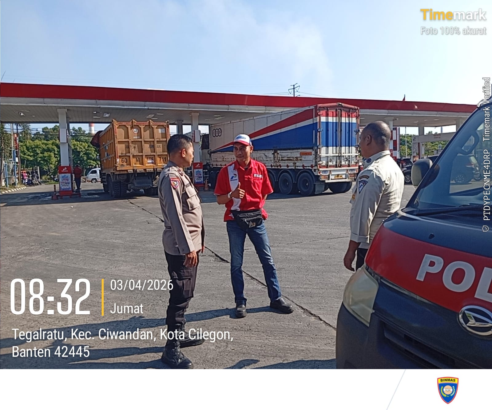 Cilegon - Kepolisian Polsek Ciwandan Polres Cilegon Polda Banten, melakukan pengecekan stok Bahan Bakar Minyak (BBM) di dua SPBU di wilayah Ciwandan, Cilegon, Jum'at (03/04/2026).