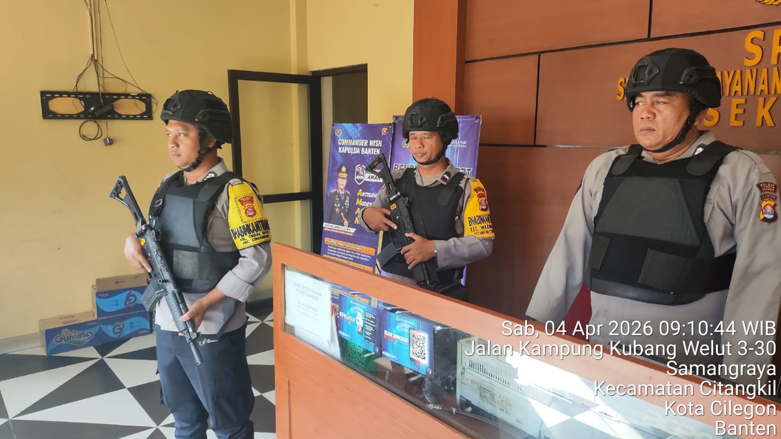 Cilegon - Guna mengantisipasi adanya potensi ancaman dan gangguan terhadap keamanan kantor maupun keselamatan personel piket jaga, Personil Polsek Ciwandan Polres Cilegon Polda Banten selalu tingkatkan kesiapsiagaan dan kewaspadaan dengan rutin menggelar kegiatan Sistem Pengamanan Mako (Sispam Mako), Sabtu (04/04/2026).