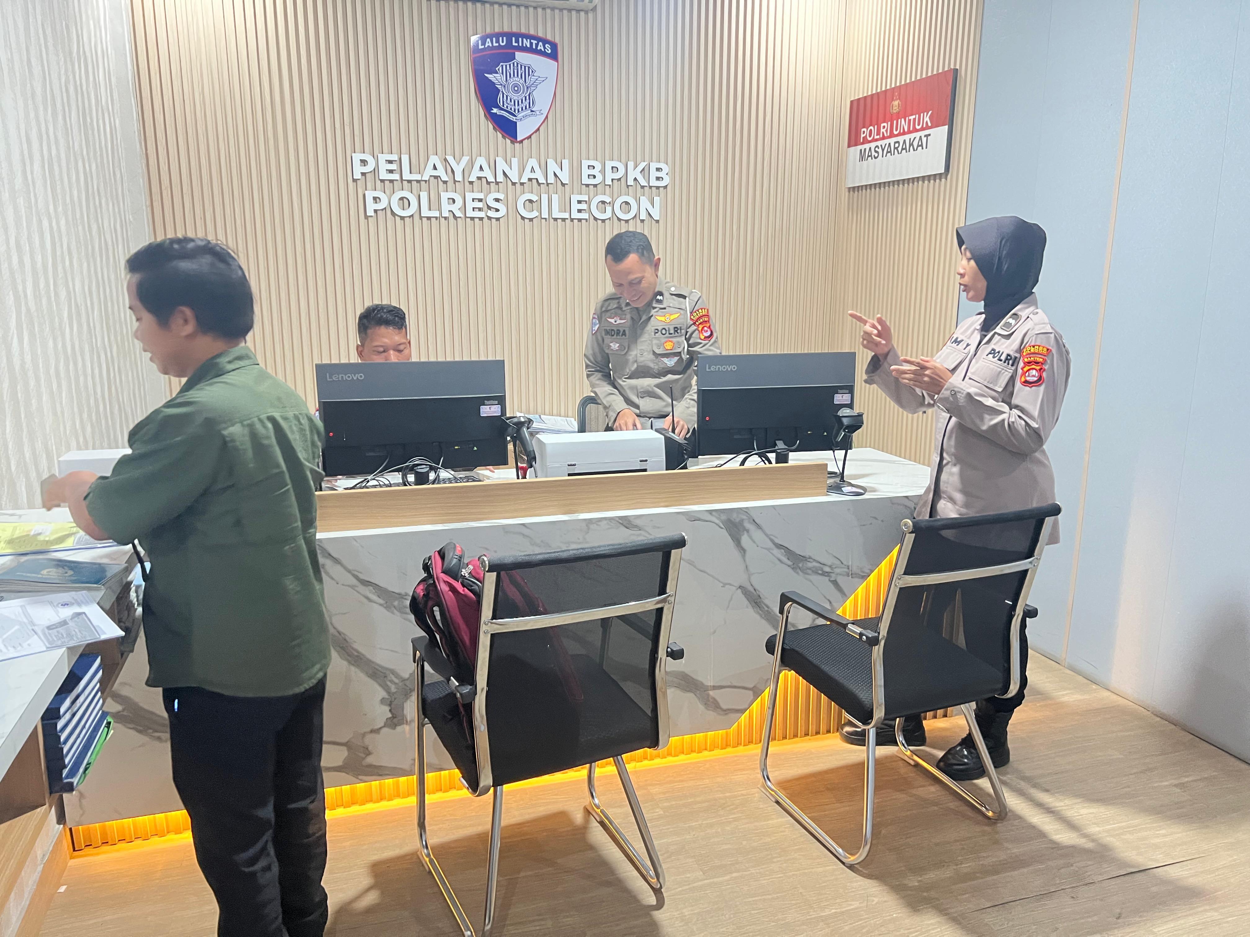 Cilegon,Polres Cilegon Polda Banten Pada Selasa/14/04/2026 Pukul 10.00 Wib, personel siwas Polres Cilegon Brigadir Hadi Sudrajat melaksankan pengawasan terhadap pelayaan yang ada di sat lantas Polres Cilegon, Khususnya pelayanan SIM. (Surat Ijin Mengmudi)