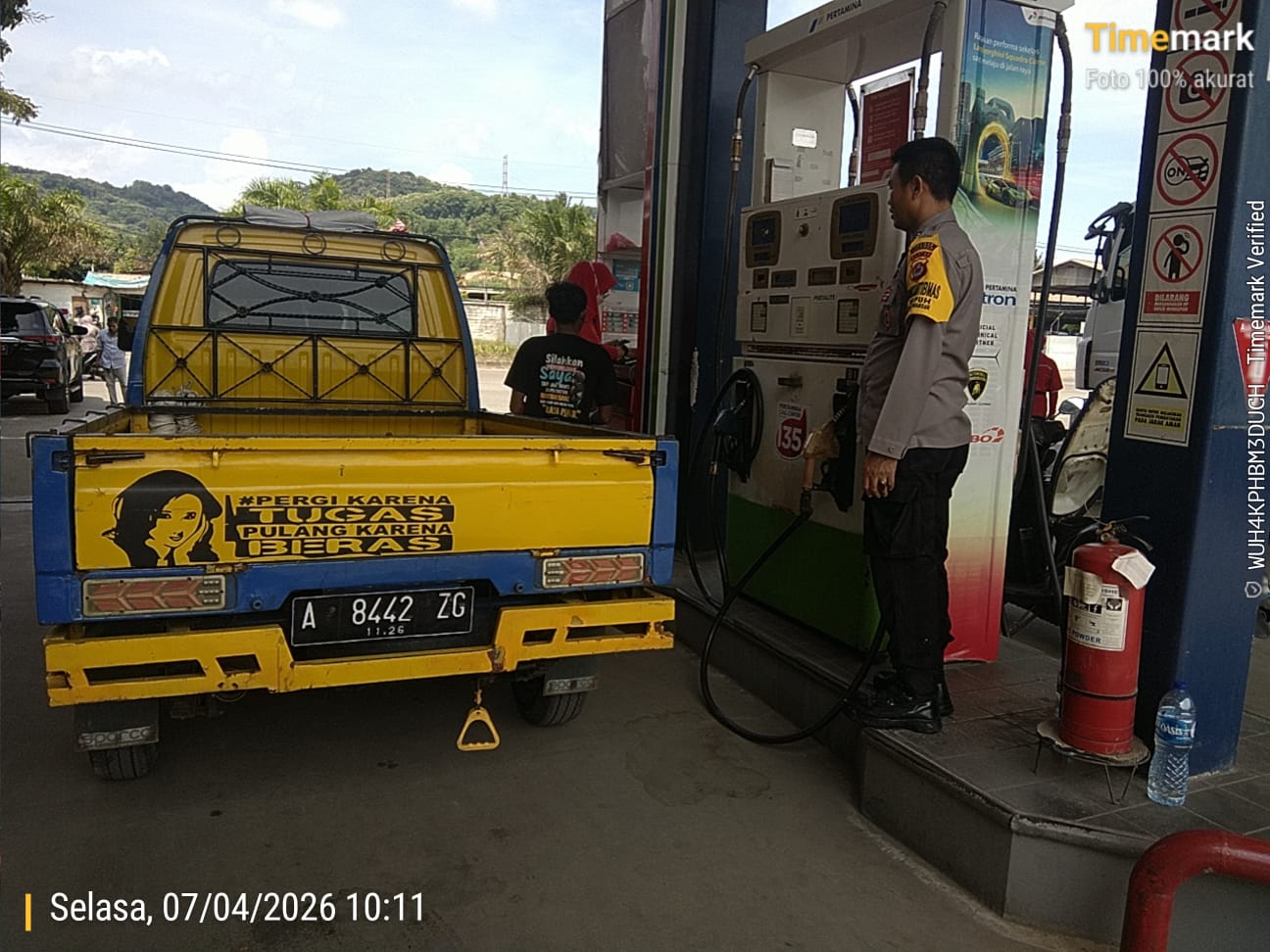Cilegon - Kepolisian Polsek Ciwandan Polres Cilegon Polda Banten, melakukan pengecekan stok Bahan Bakar Minyak (BBM) di dua SPBU di wilayah Ciwandan, Cilegon, Selasa (07/04/2026).